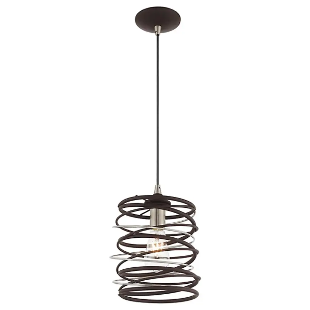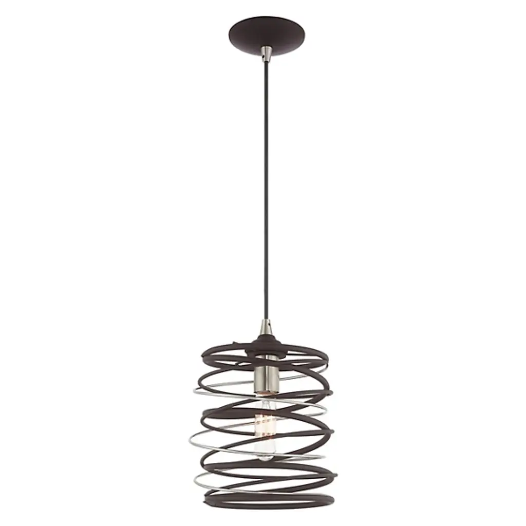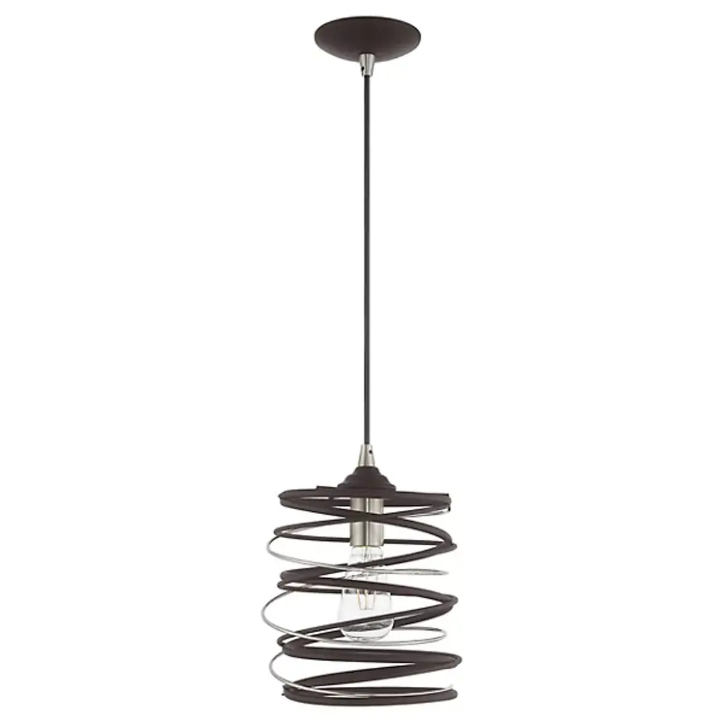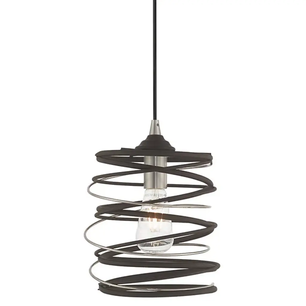 Bring a swirl of style to inside ceiling spaces with the Sharrie Mini Pendant from Alder & Ore. A simple fixture at heart, it starts with a curving disc canopy that uses a single cable to suspend a single socket below it. The lamping is durable, damp-listed, and comes accompanied by a large, spring-shaped accent that swirls down around it, gentling bright glare and extending a swirling display of light and shadow around the fixture.
