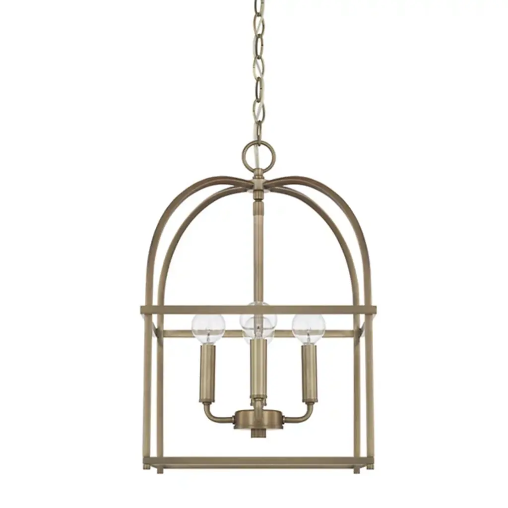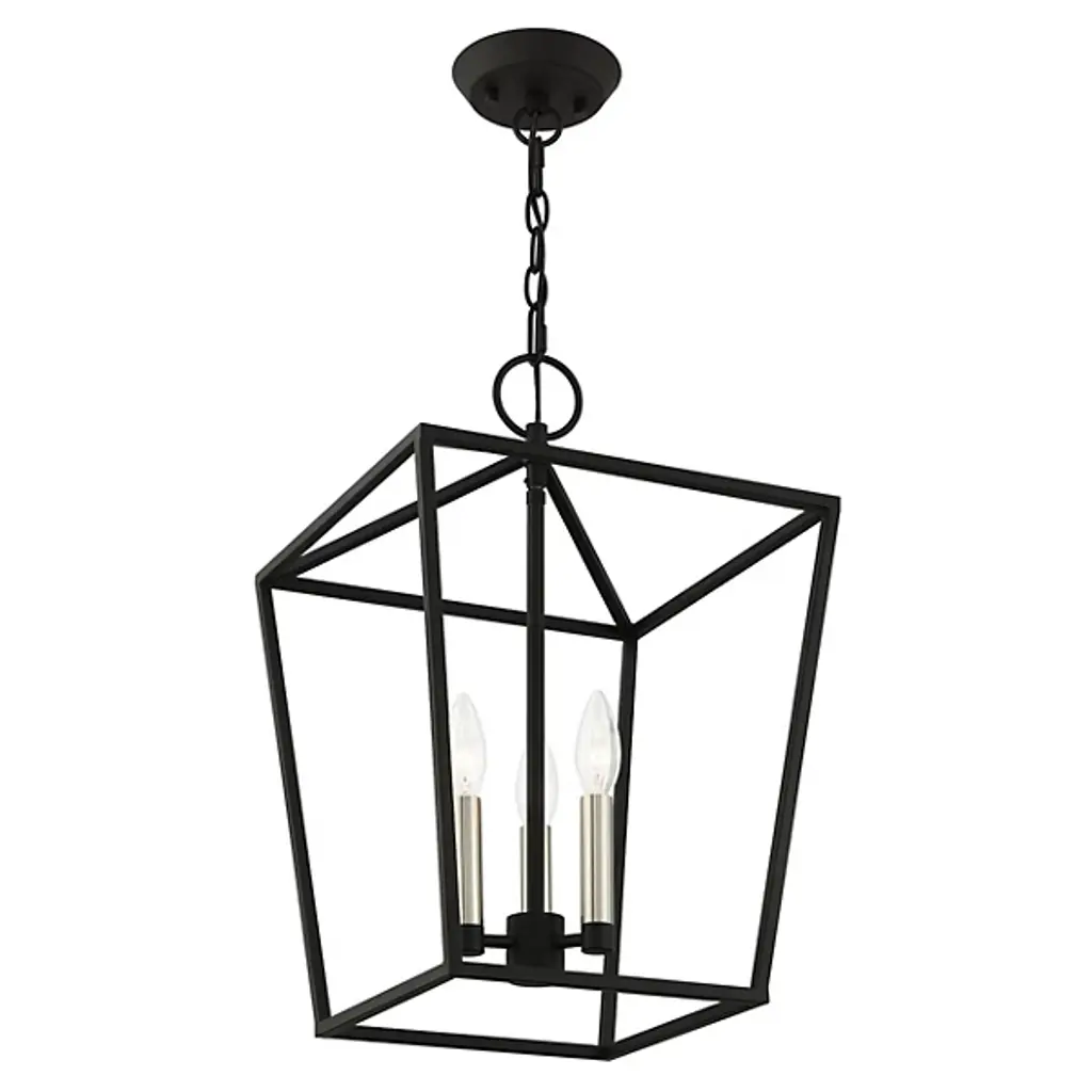 An open fixture with a captivating transitional appeal. The Shasta 3 Light Semi Flushmount / Pendant from Alder & Ore is the standout piece in open spaces, designed to complement a range of home styles. It extends down from a beveled, circular canopy with a length of chain for a pendant or flushmount look. Topped with a ring finial, an angular steel frame presents a clean, open silhouette. Candelabra-style lamps set around a cylindrical hub as they suspend from a slender stem. This open lamping arrangement dispenses a broad layer of light in any indoor location.