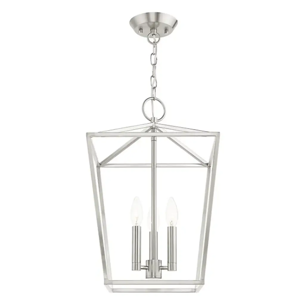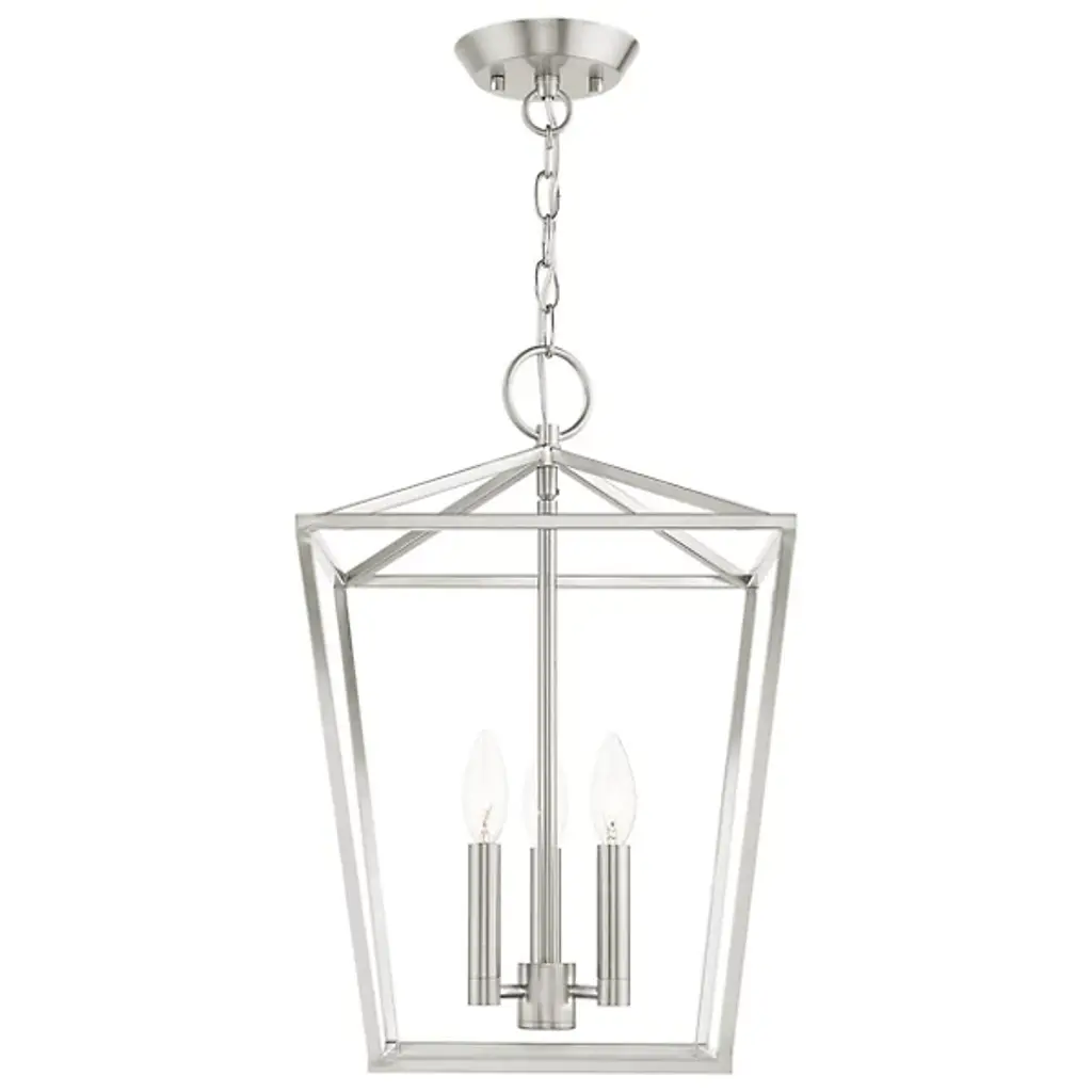 An open fixture with a captivating transitional appeal. The Shasta 3 Light Semi Flushmount / Pendant from Alder & Ore is the standout piece in open spaces, designed to complement a range of home styles. It extends down from a beveled, circular canopy with a length of chain for a pendant or flushmount look. Topped with a ring finial, an angular steel frame presents a clean, open silhouette. Candelabra-style lamps set around a cylindrical hub as they suspend from a slender stem. This open lamping arrangement dispenses a broad layer of light in any indoor location.
