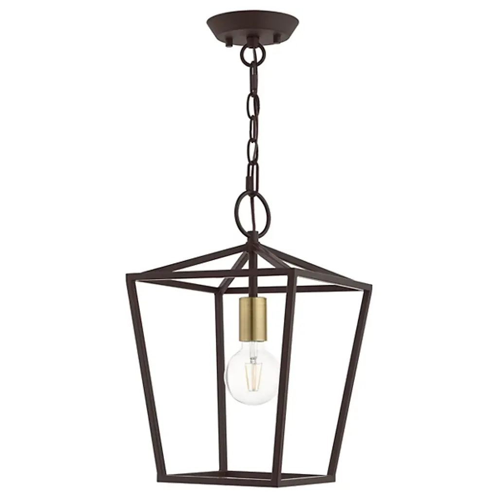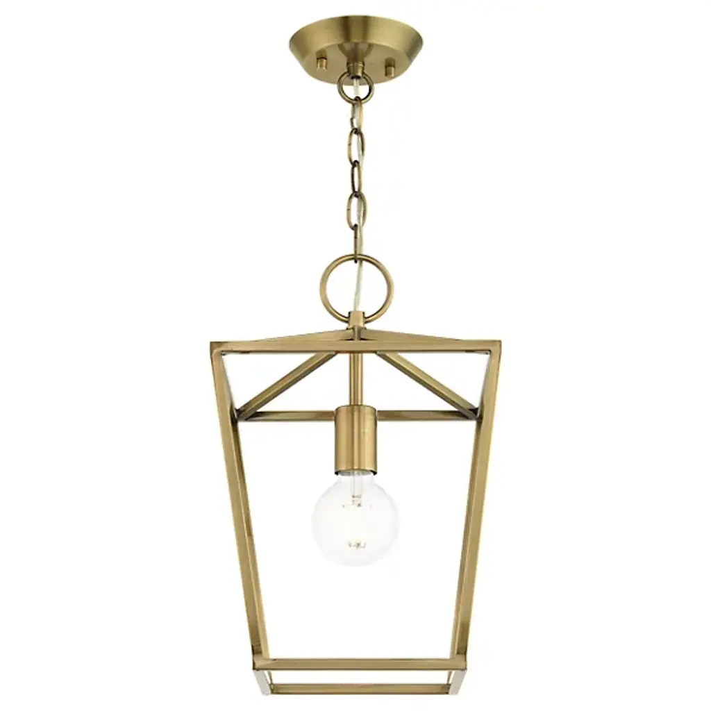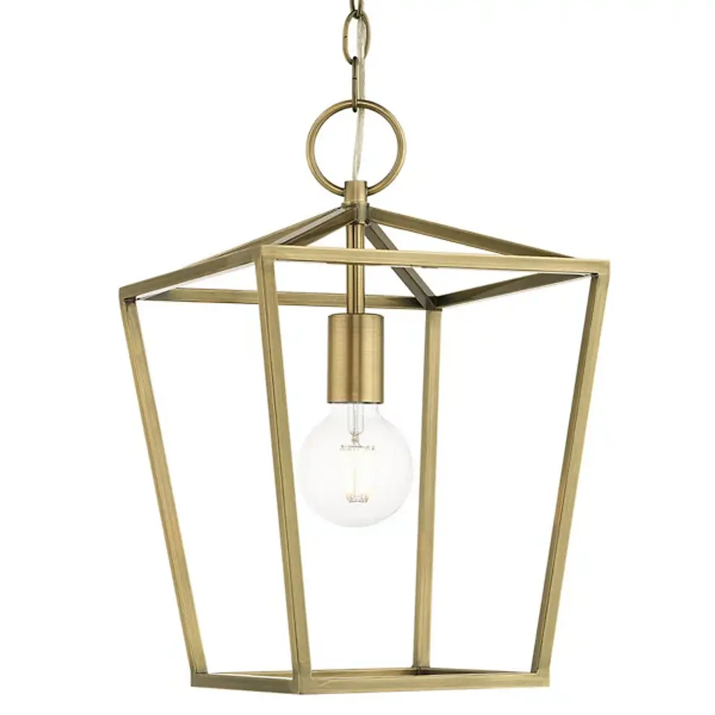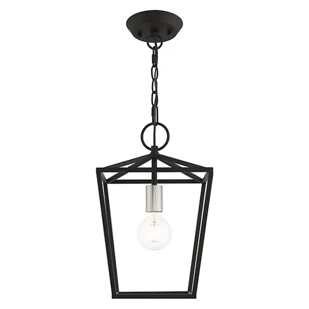 Add an inspired, expansive silhouette to your rooms with the transitional design of the Shasta Semi Flushmount / Pendant from Alder & Ore. Through its chain suspension, the piece sits close to the ceiling as a flush mount or extends down as a traditional pendant from a beveled disc canopy. The large ring finial suspends a damp-listed single socket below while serving as a charming accent. An angular steel frame surrounds the socket with a sleek and familiar silhouette. Light blazes through the open-air frame, dispensing a bright and wide-reaching glow in all directions.