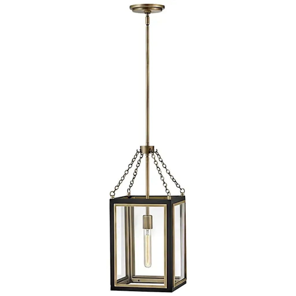 The Shaw Small Pendant from Hinkley Lighting gives the home an ageless note with a design blending modern and traditional motifs. This pendant makes for a great focal point on its own or part of a series over a table. Streaming down from a slender rod, fine chain links accent the piece like a lantern’s hood. Also, like a lantern, the pendant presents itself in a glass-covered design. A robust metal structure holds these glass panels together with a stylish two-tone finish. Filamented bulbs give the piece a complete, vintage-inspired look. The bulb’s warmth and texture radiate out a tone-setting downglow.