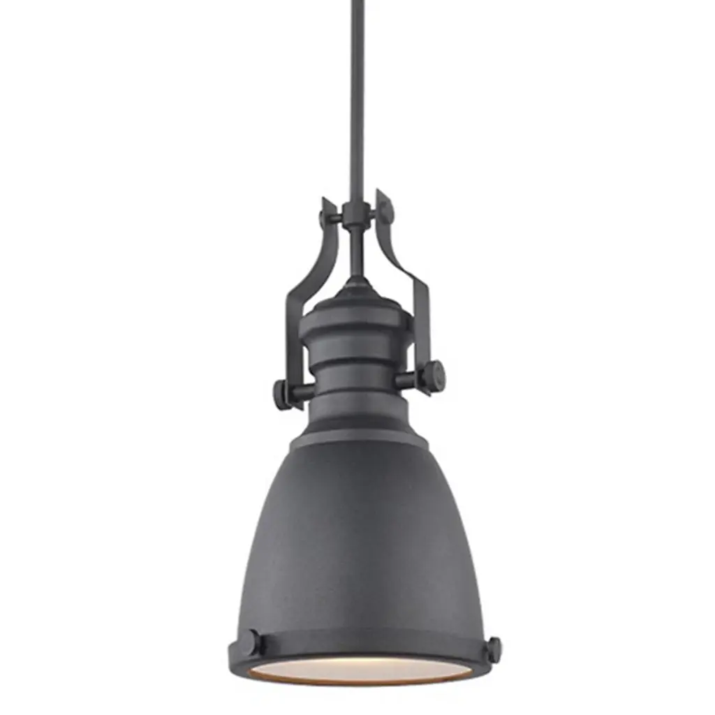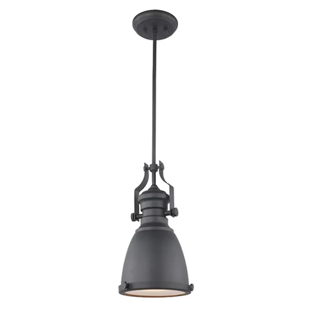 The Shayna Mini Pendant by Alder & Ore offers a tasteful mix of clean surfaces with vintage construction. A beveled and pattern-cut canopy drops a long steel stem to a complex bracket and housing arrangement, flaring out as it wraps the single-socket lamping beneath it. The direct brightness of the lamping is mellowed by a round diffuser of frosted glass that caps the shade’s base, casting a pleasantly warm ambiance below the fixture.