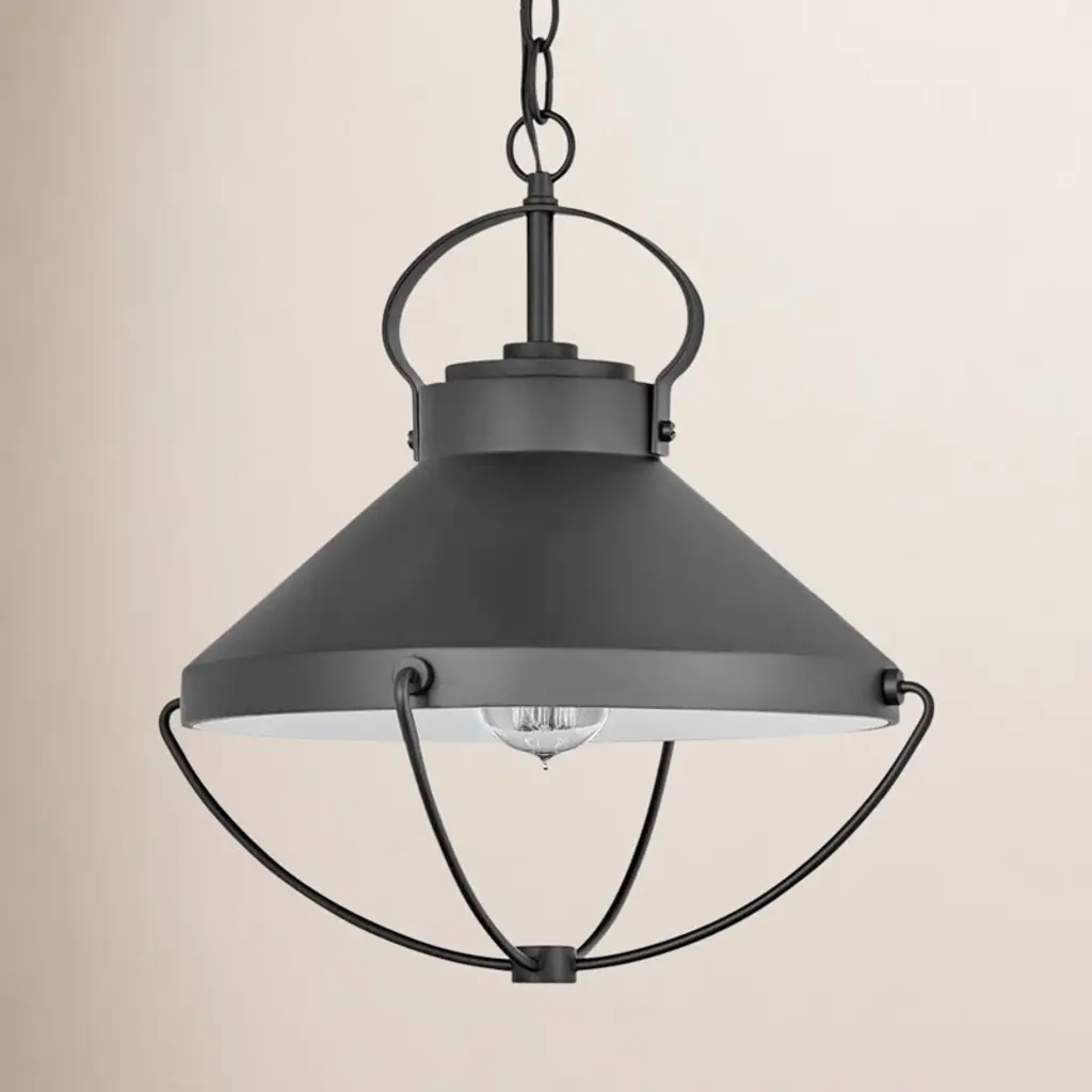 Industrial farmhouse styling is summed up in the Sheffield collection. This ceiling mounted fixture celebrates the simple and sturdy aesthetic of old factories and industrial spaces. Suspended by large chain links, this unfinished style has evolved into a look that is both pleasing to the eye and functional. New bronze and distressed ash finishes add to the warmth this collection will bring to your dining, island and living areas.