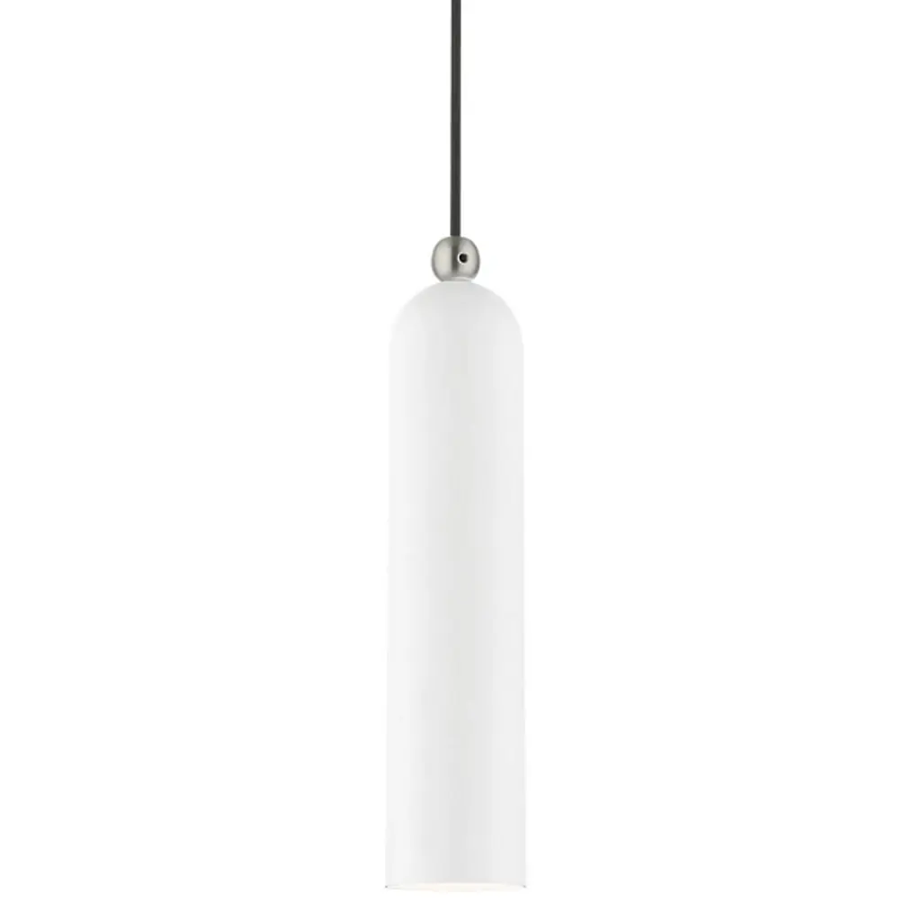 A small, minimalist piece perfect for shaping the décor of your home without taking up much space. The Sherry Mini Pendant from Alder & Ore drops from the ceiling by a single thin cord that attaches to the round, enclosed top. The cylindrical shade extends further, ending with a flat base that exposes the single bulb within. The light shines out in a bright and even manner, touching directly into the space below.