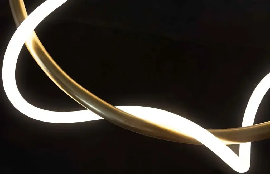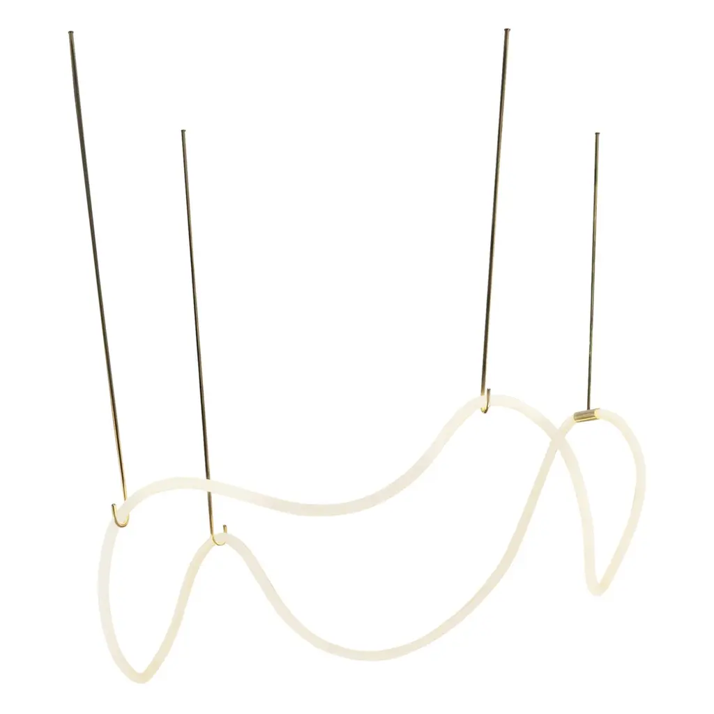 Shiva, sculptural brass light pendant by morghen studio. materials: satin brass, led light dimensions: 190 x 50 x 30 cm (variable) light source: 5m led neon - 32 w - 3.000 k - 3.800 lm driver: external (ac 220v/ dc 220v) shiva dances twist with a scenographic and unexpected how. The horizontal element is at the same time origin, pretext, and conclusion of her path. The outcome is a harmonious coupling between the two elements originating a unique piece, always different in shape and rhythm. this piece is attributed to the mentioned designer/maker. It has no attribution mark and no official proof of authenticity, however it is well documented in design history. I take full responsibility for any authenticity issues arising from misattribution, up to 250v (europe/uk standard).