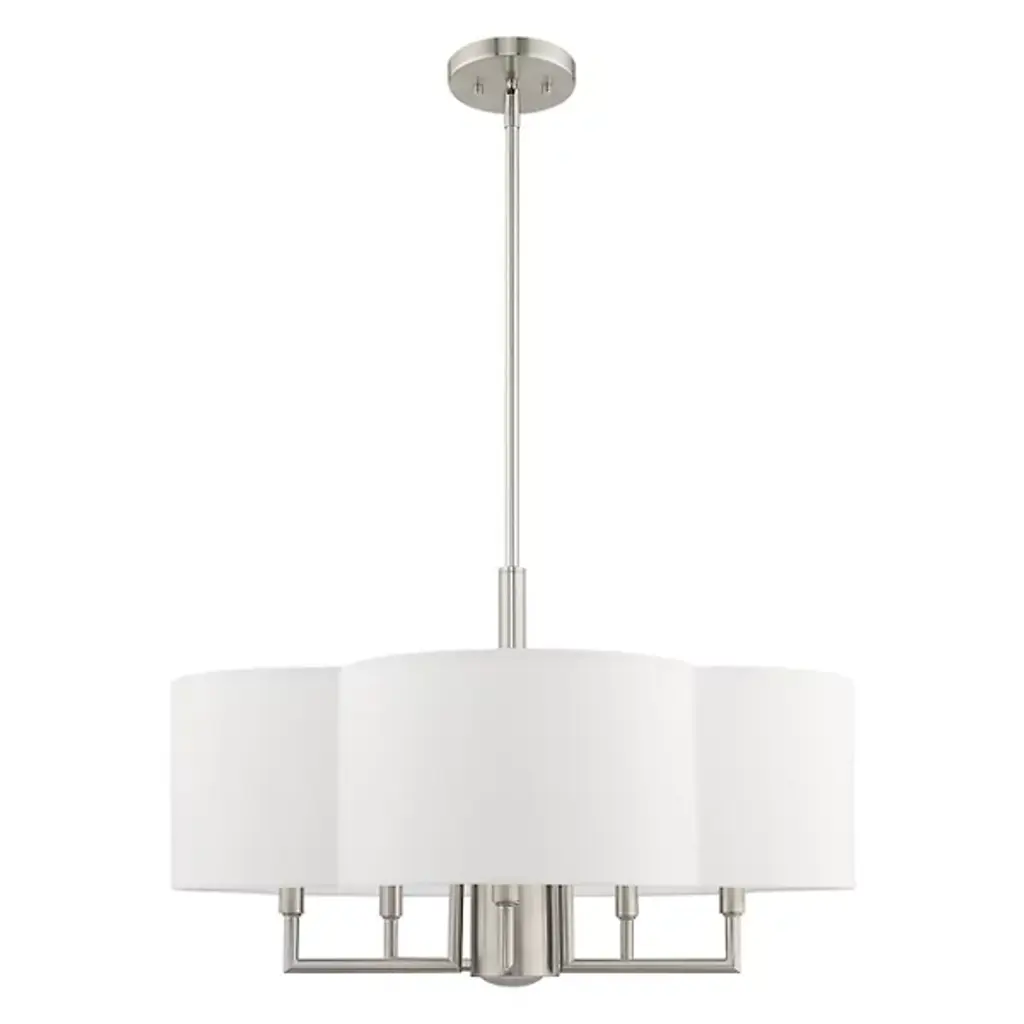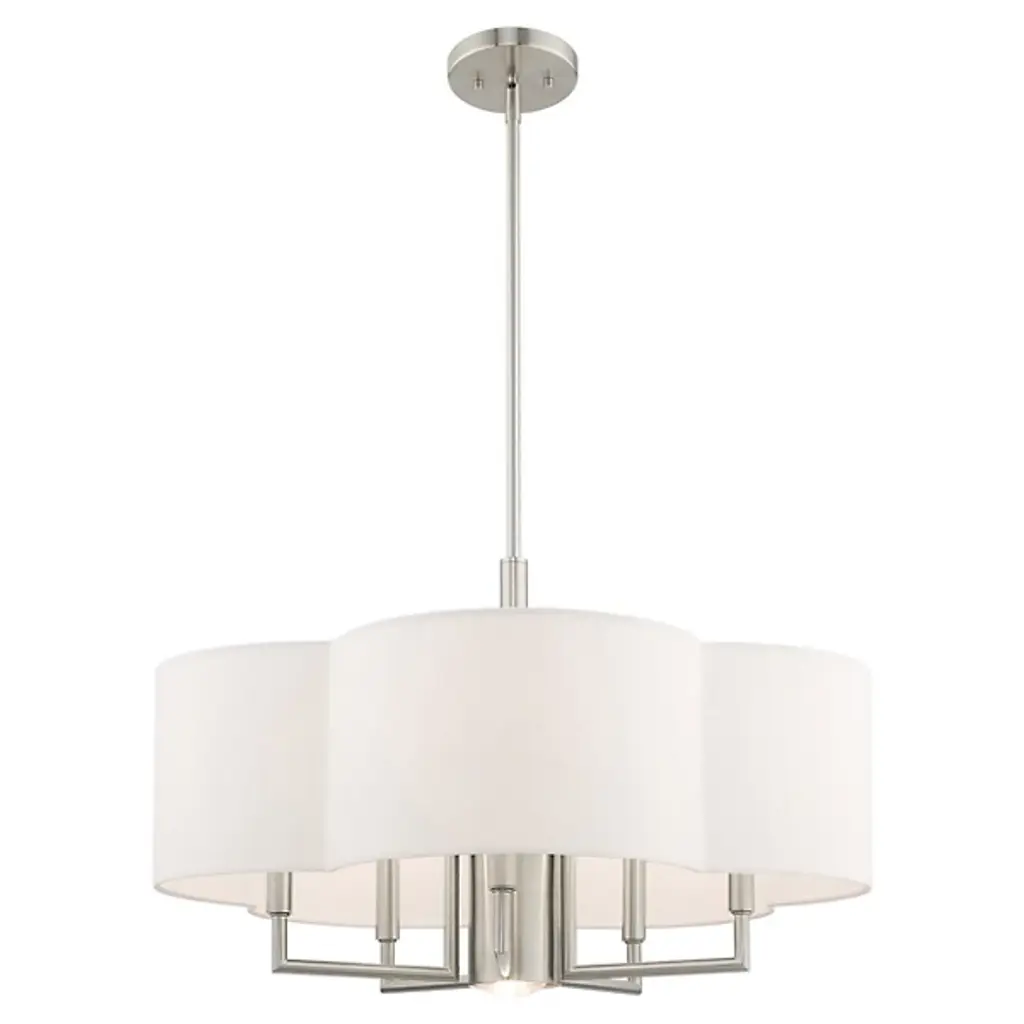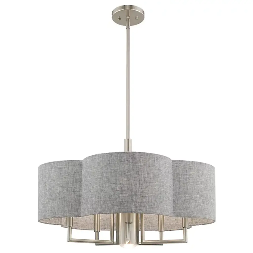 The Sibel Pendant by Alder & Ore brings a bright, beautiful touch to the spaces it is in. Suspended from a single down rod, a collection of candelabras are supported by a set of crisply bent metal arms that are shielded by a handcrafted, clover-shaped, hardback shade. The soft curves of this shade add a chic look to the simple composition of this chandelier as it helps to filter an even layer of illumination onto its surroundings.