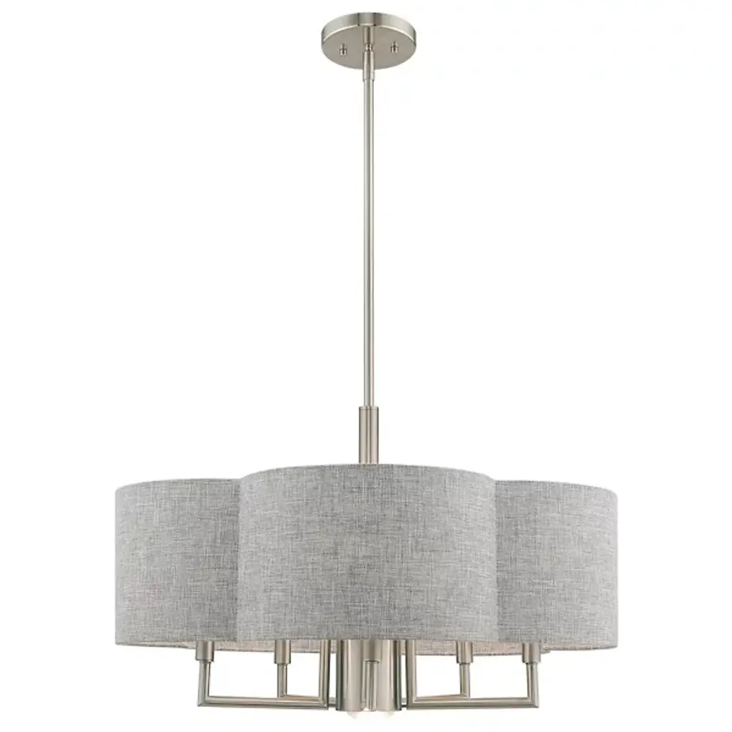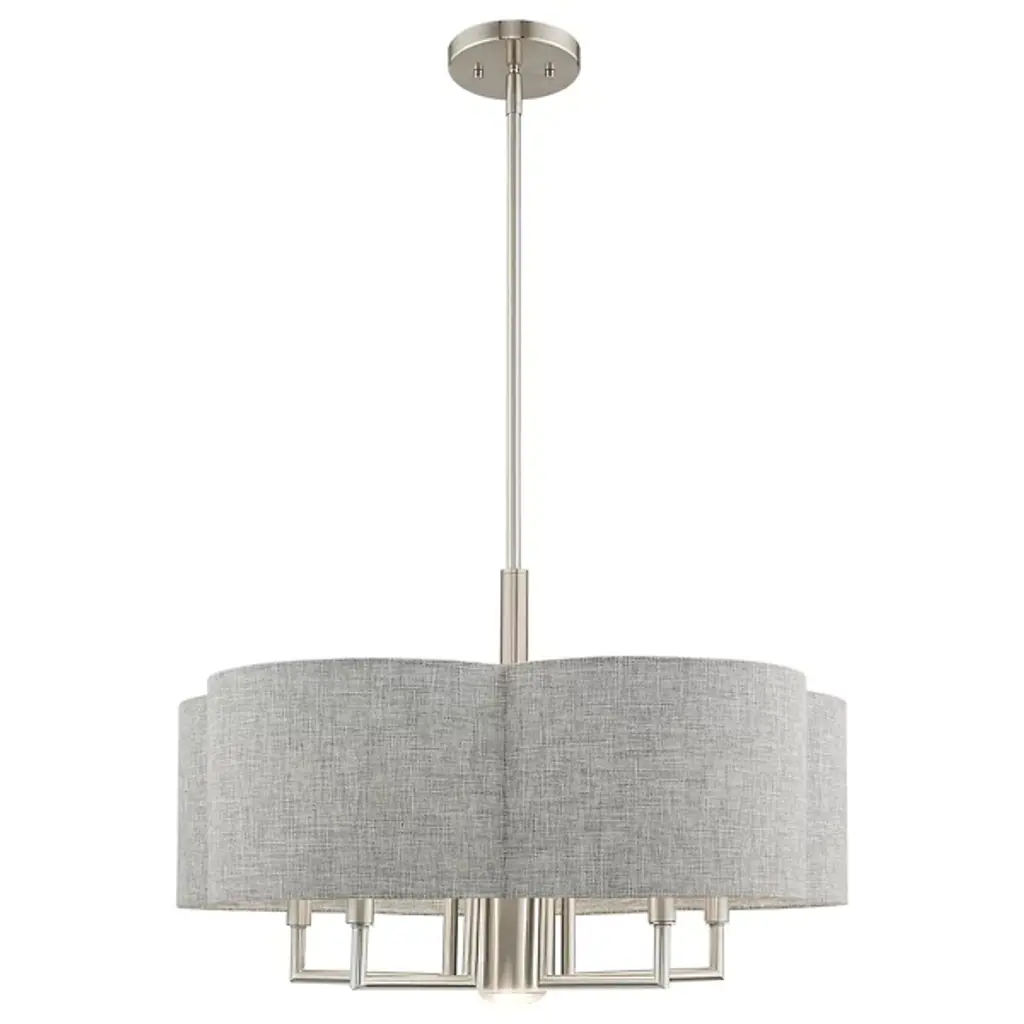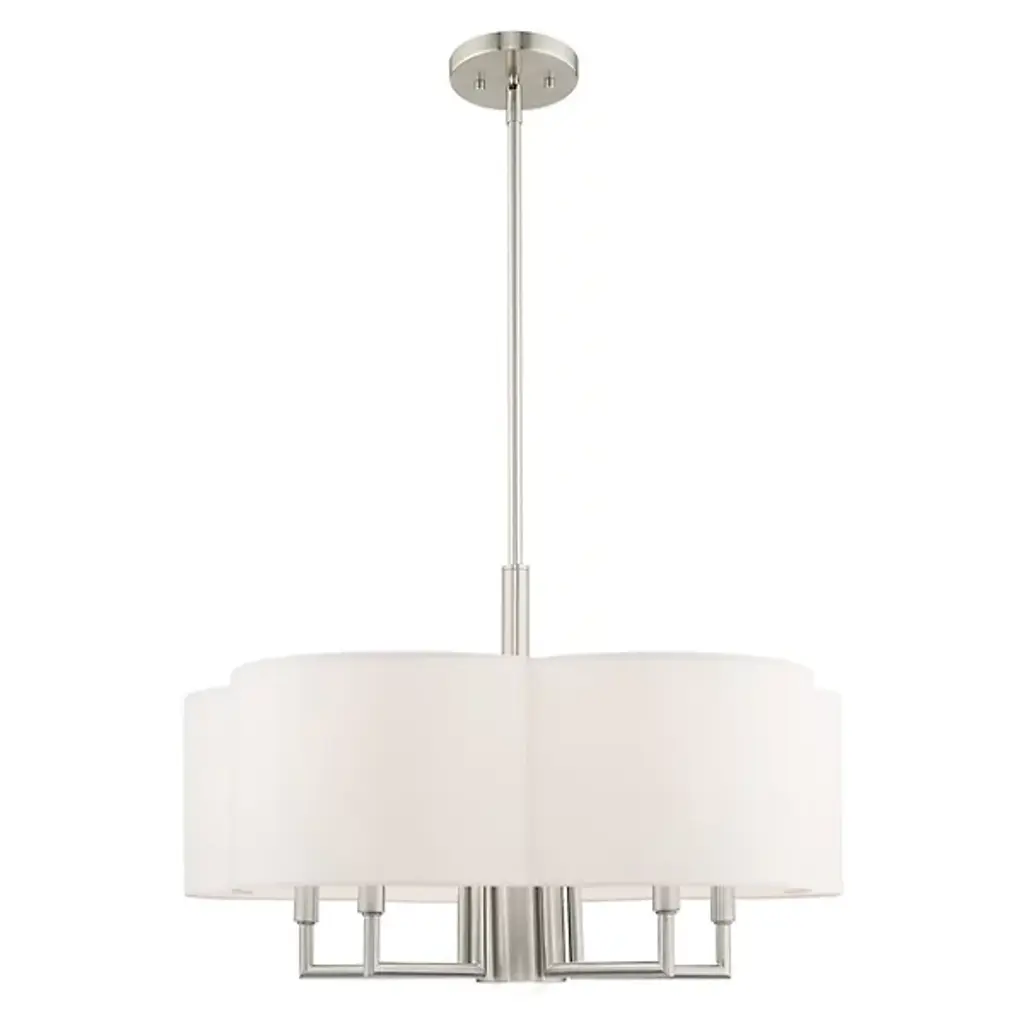 The Sibel Pendant by Alder & Ore brings a bright, beautiful touch to the spaces it is in. Suspended from a single down rod, a collection of candelabras are supported by a set of crisply bent metal arms that are shielded by a handcrafted, clover-shaped, hardback shade. The soft curves of this shade add a chic look to the simple composition of this chandelier as it helps to filter an even layer of illumination onto its surroundings.