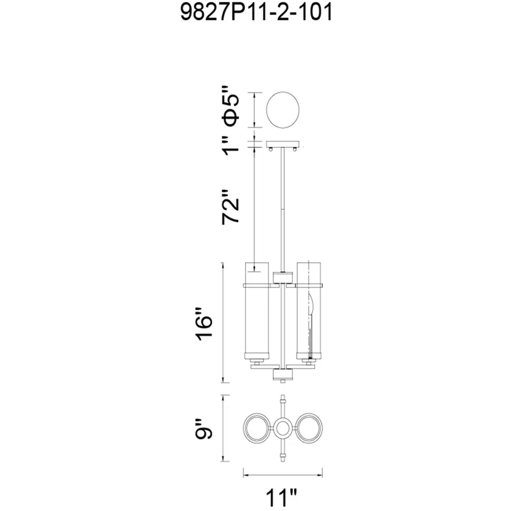 Sierra 2 Light 9 Inch Black Up Mini Pendant Ceiling Light