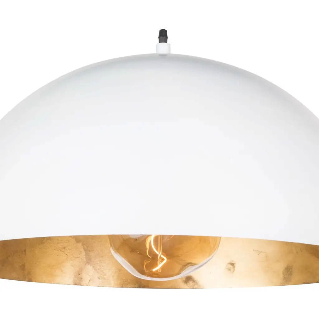 A simple dome shade brings sleek minimalism to the mix. Featuring a gold-leafed finish on the shade's interior, this gives the room a warm glow and a sophisticated pop of contrast.