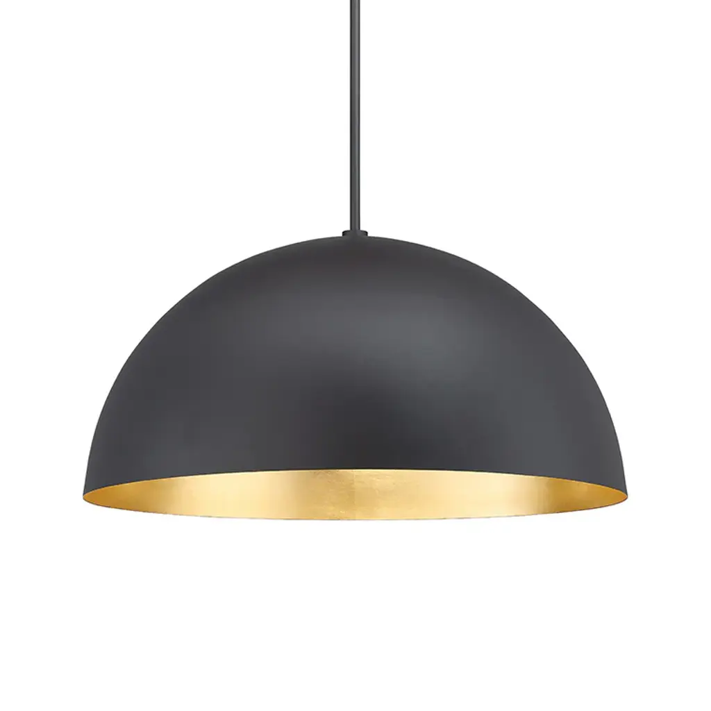 A classic domed pendant is always a crowd pleaser. This pick can easily fit in a cool industrial loft spaces, but just as easily mixes with minimalist aesthetics thanks to its textured black finish and shiny gold-leaf interior.