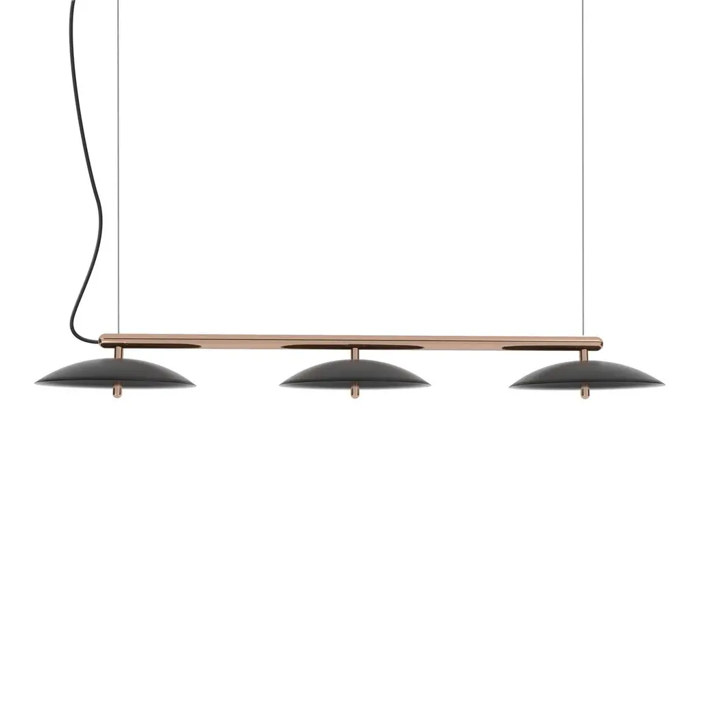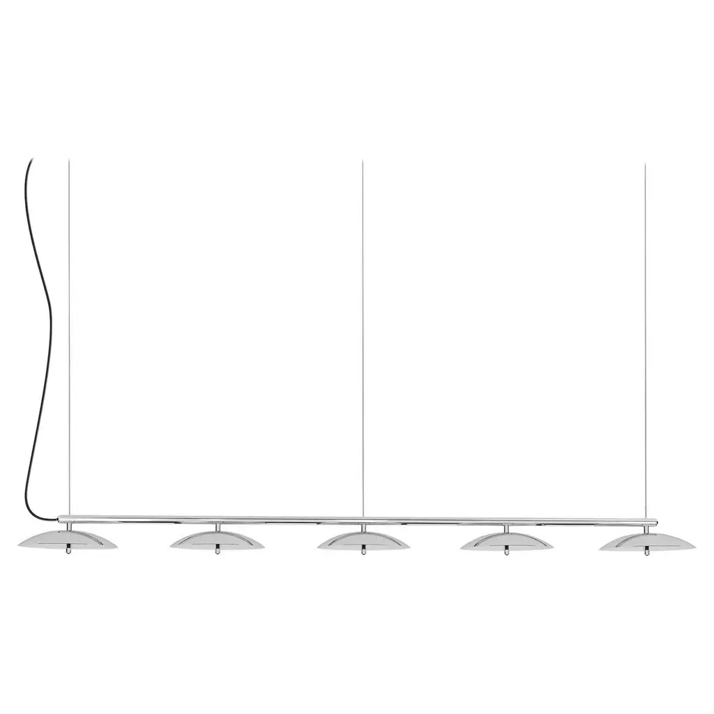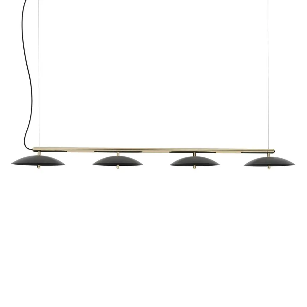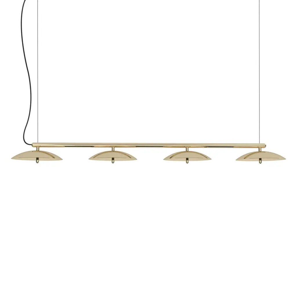 Perfect above a dining table or a conference table, the signal linear pendant is a decidedly modern linear suspension light. A polished metal arm effortlessly supports spun metal shades that cast a downward glow through perforated diffusers. The signal linear pendant is available in a number of sizes, mix-and-match finishes, and can be further customized to nearly any length.Lamping: G8 LED Bulbs (included)Canopy: Black, 5in Diameter, .25in height8x G8 LED bulbs included (2 per shade)48w, 4800 Lumens, CRI 90+