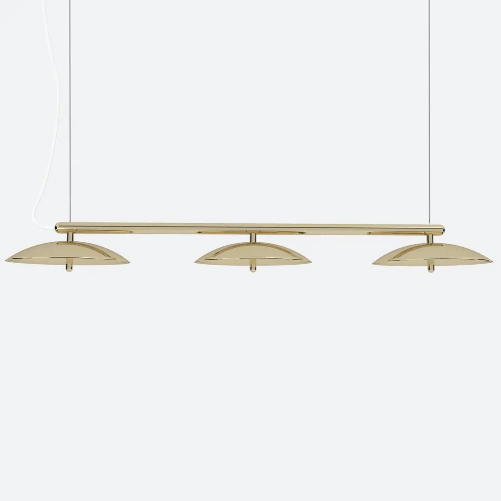 Price is for a signal linear pendant with white shade and copper accents. This piece is customizable so we can also make the finishes per order to your spec. Lamping: G8 LED Bulbs (included)Canopy: White, 5in Diameter, .25in height6x G8 LED bulbs included (2 per shade)36w, 3600 Lumens, CRI 90+