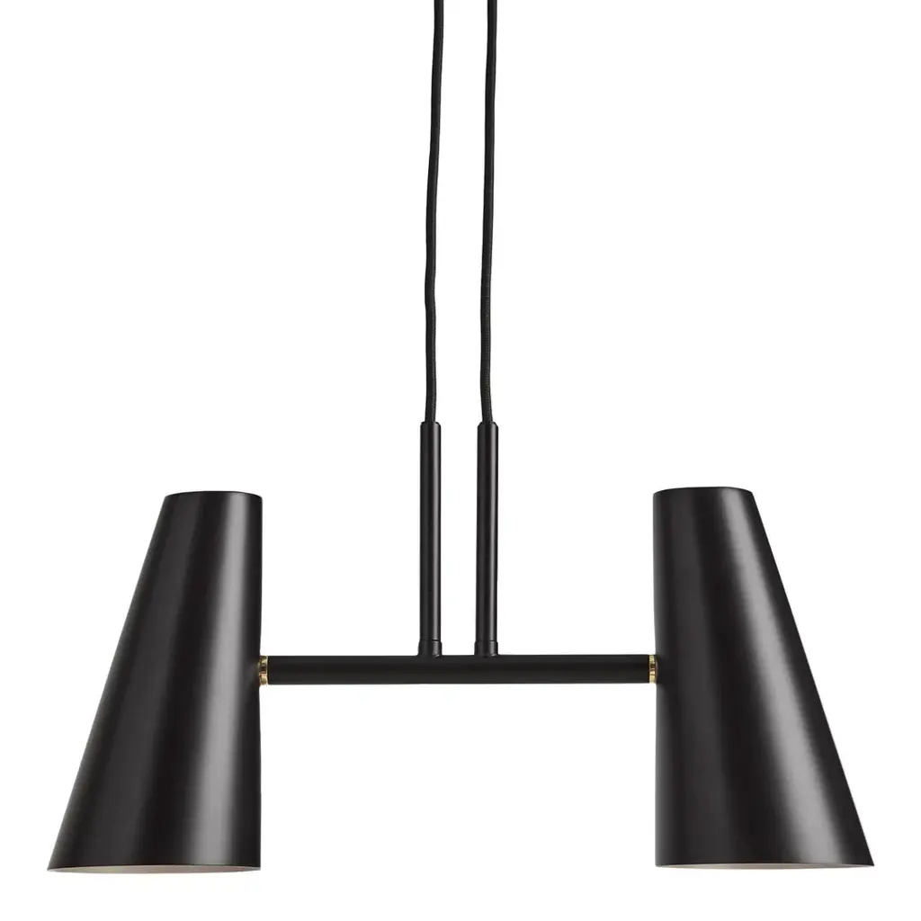 Price is for a Signal linear pendant with black shades and brass accents. This piece is customizable so we can also make the finishes per order to your spec. Lamping: G8 LED Bulbs (included)Canopy: Black, 5in Diameter, .25in height4x G8 LED bulbs included (2 per shade)24w, 2400 Lumens, CRI 90+