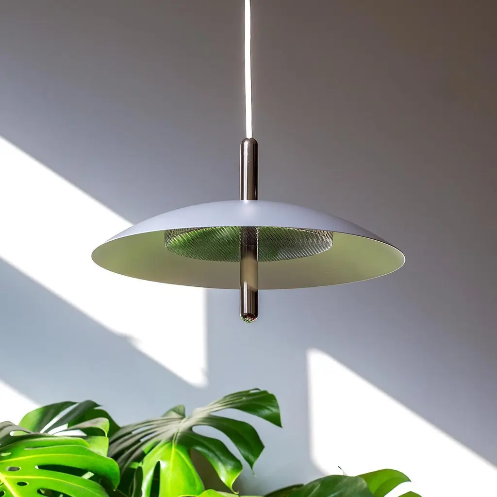 Utilizing warm LEDs and indirect light, signal pendants hover above any interior like a celestial body emitting a comforting glow. Consisting of a spun metal shade pierced by a polished central stem, the signal pendant is minimal and expressive. Whether hung individually, or clustered in larger groups, signal pendants create a constellation for your interior.2x G8 LED bulbs included12w, 1200 Lumens, CRI 90+96" Black or White Cable, 5" Canopy that matches the color of the cableFully Dimmablec/UL Listed.
