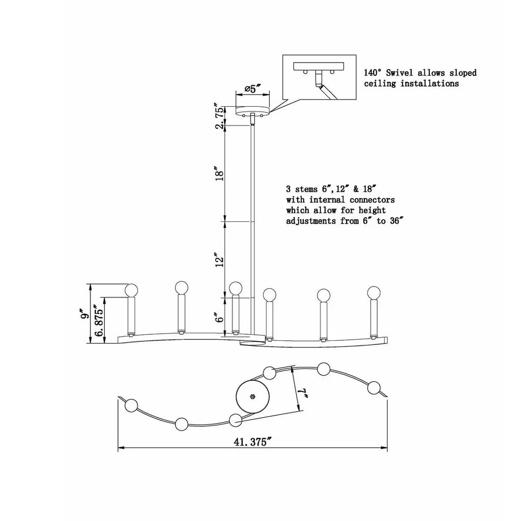 Signature 6 Light 41.5 Inch Brushed Nickel Island Pendant Ceiling Light