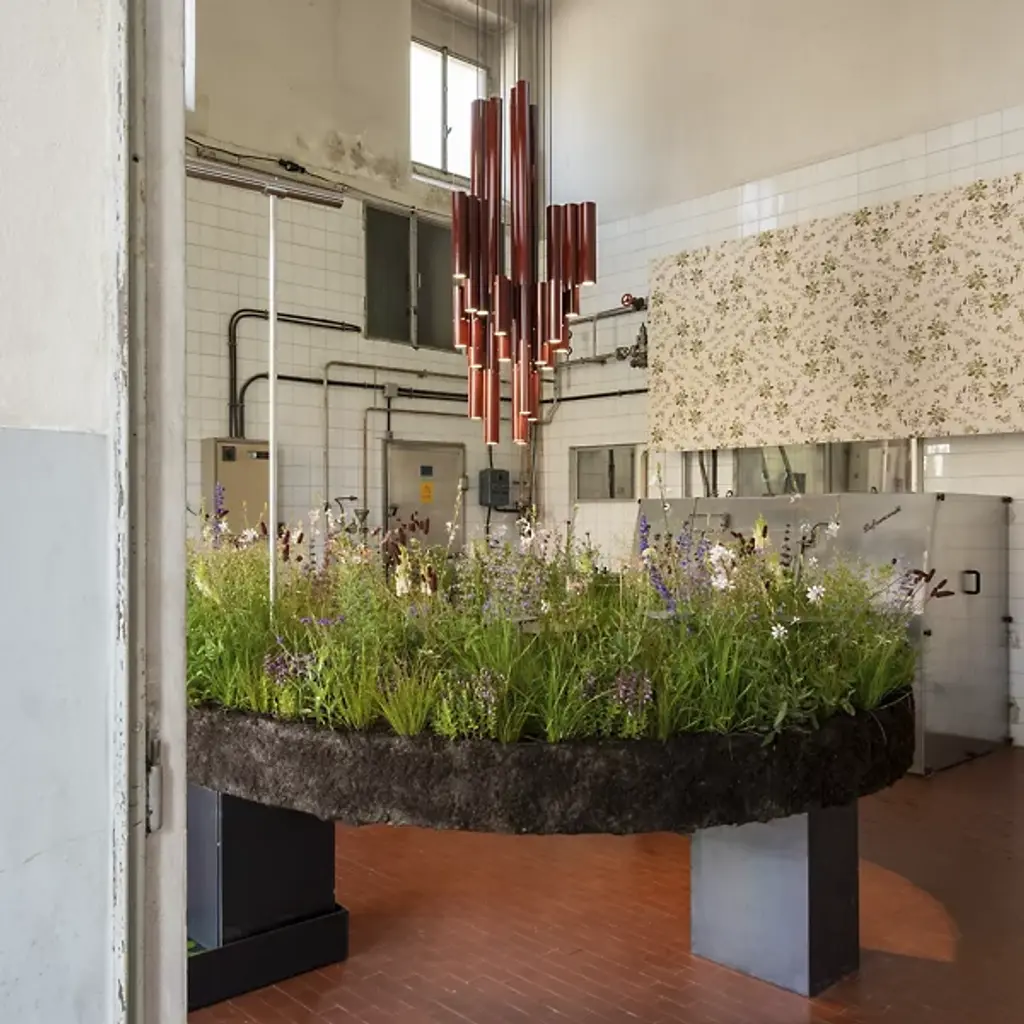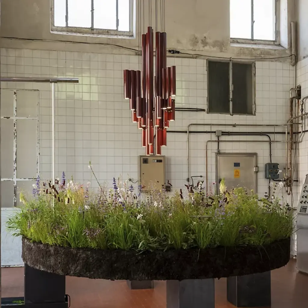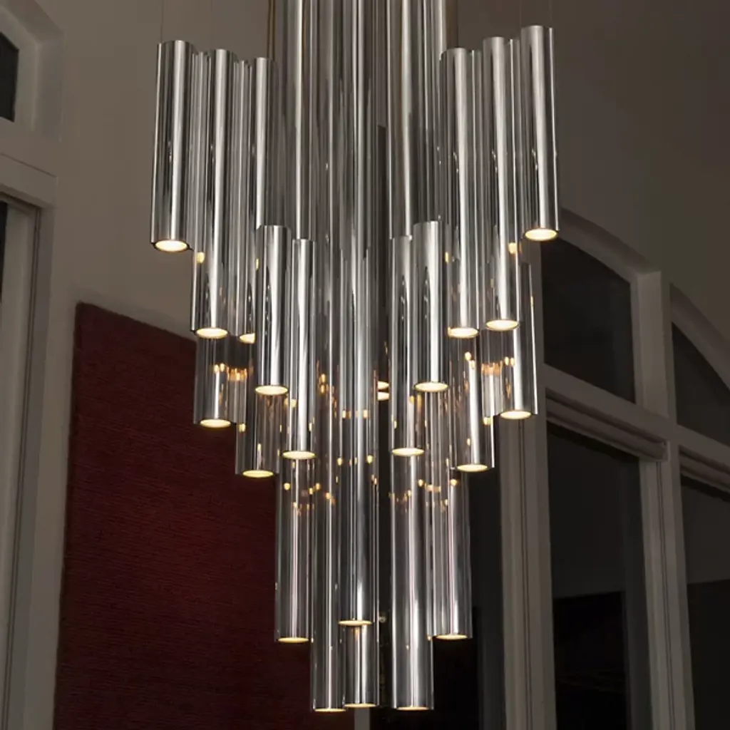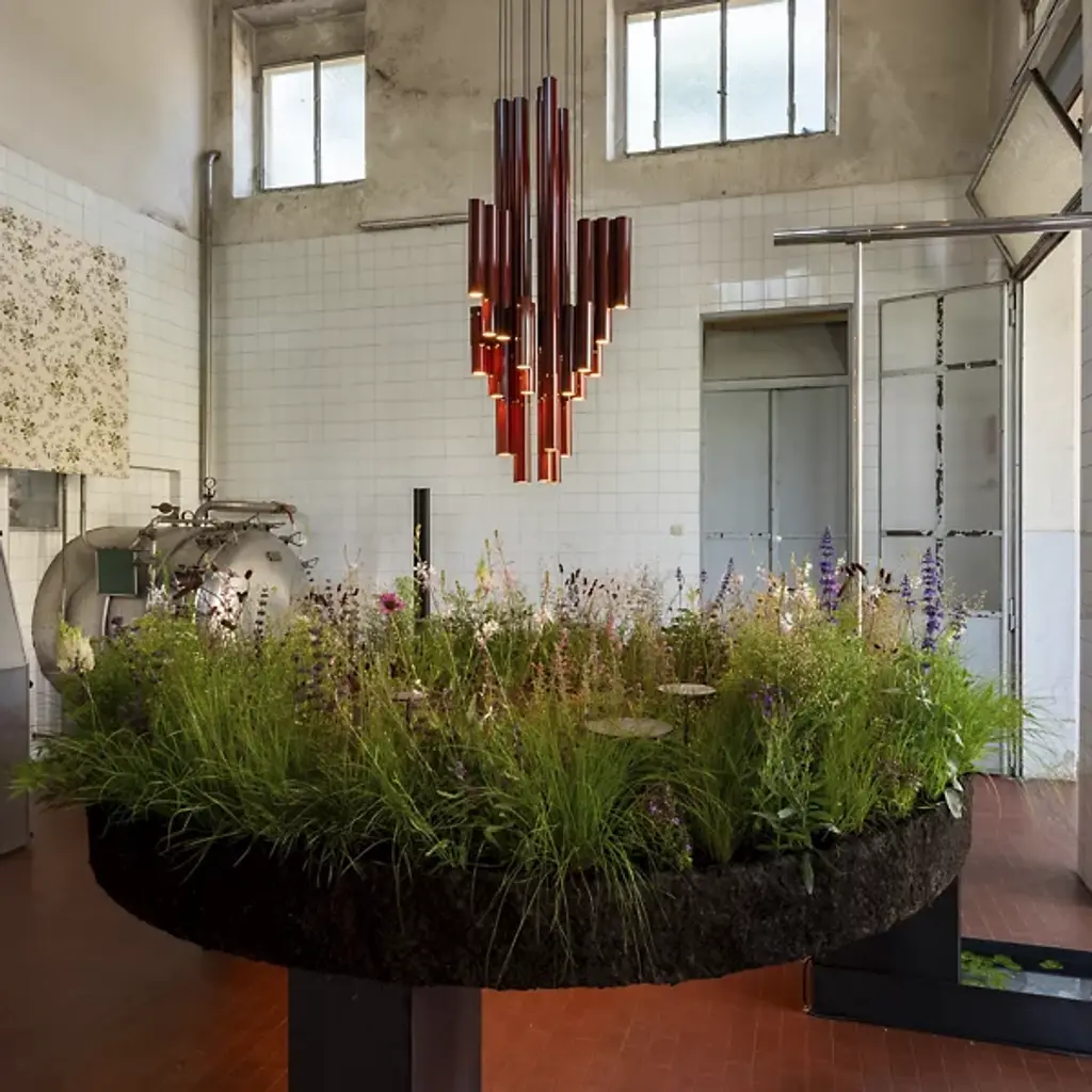 Present lasting grace and retro elegance to interiors with the Silo Atelier 01 from Lambert & Fils. A large and airy fixture that artfully blends the rural world of the farm with the refined urbanity of mid-century design. The fixture descends from a stepped circular canopy via an array of slender, strong cables, placing strong LED lamping inside a fluted array of cast aluminum extrusions that form a stepped assembly that evokes the fixture’s name. Translucent glass diffusers sit inside each tube, transforming bright glare to a soft glow and casting a compound ambiance below the fixture.