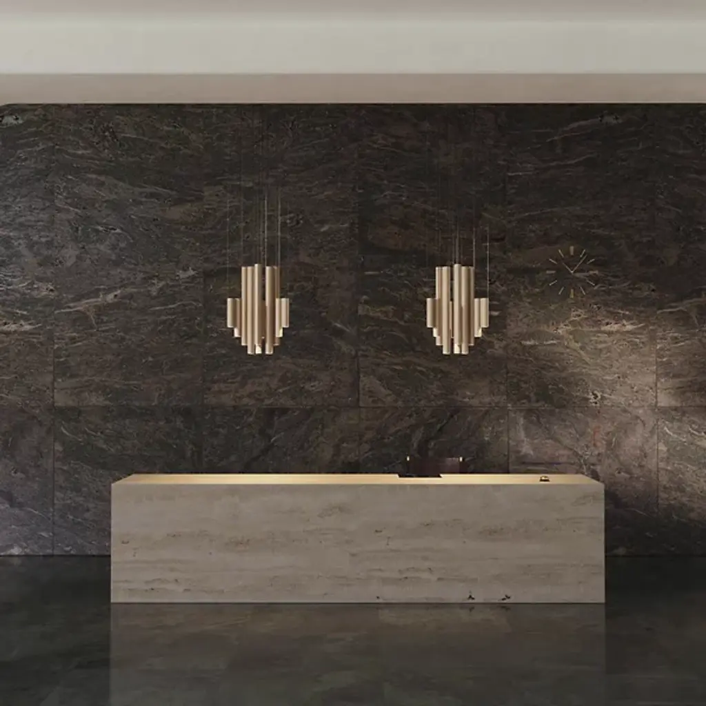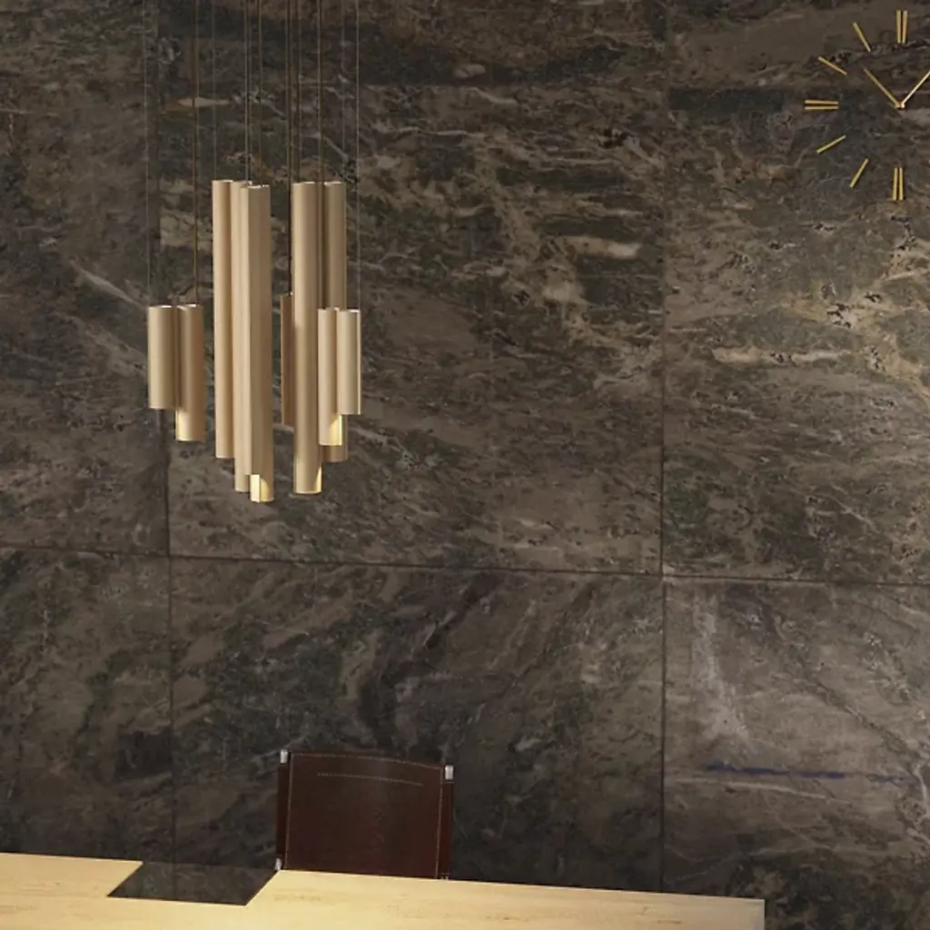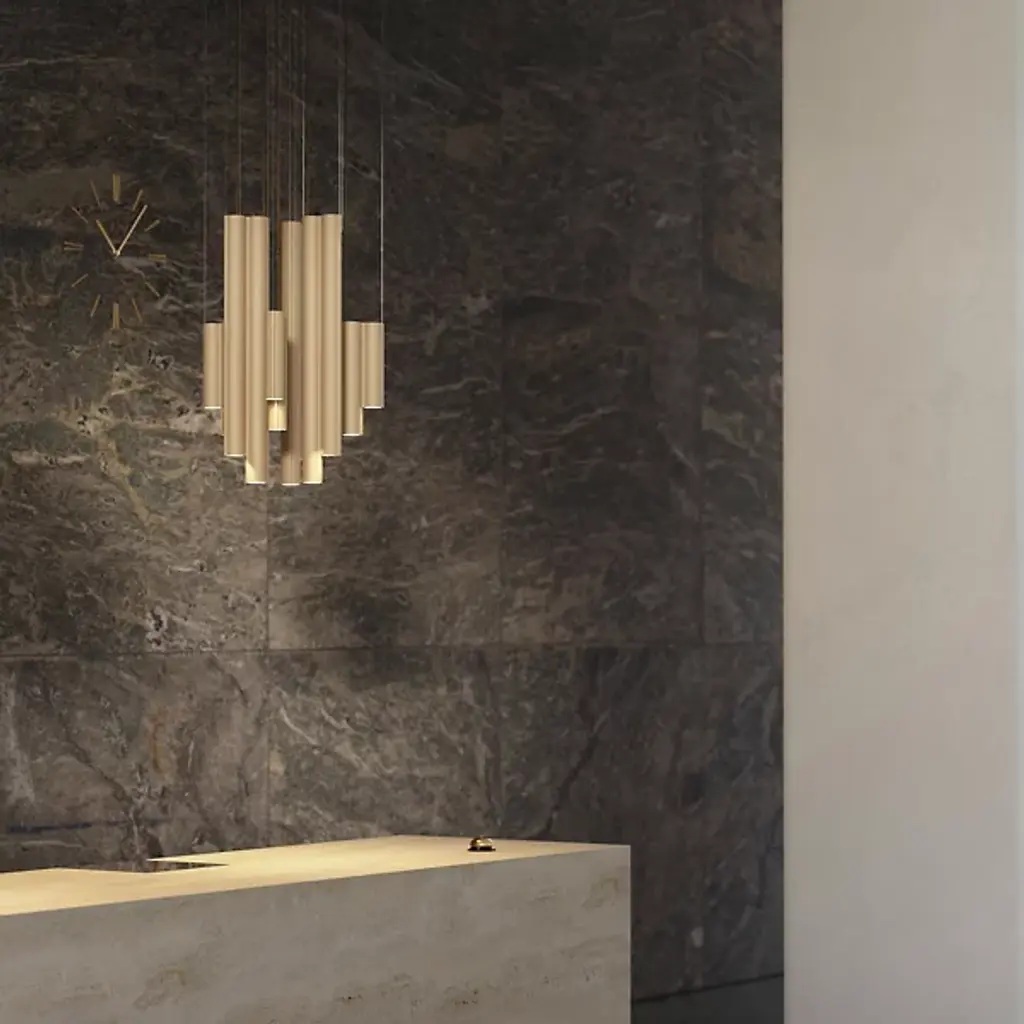 Bring the rustic world of the farm to the big city with the Silo Atelier 03 LED Pendant from Lambert & Fils. Bridging two worlds with an inspired sense of duality, the fixture mixes retro-modern refined design with contemporary simplicity. A broad circular canopy retains the fixture, dispatching slim cables down to strong LED lamping inside custom-molded aluminum extrusions that ascend like miniature versions of their namesake, splashing out a compound array of downlight from its intricate, stepped structure.