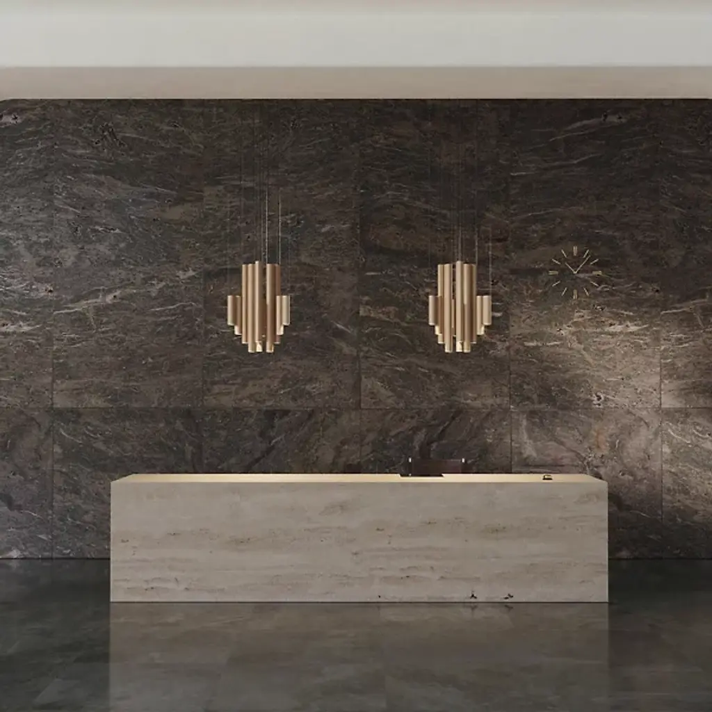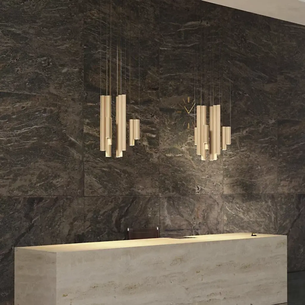Bring the rustic world of the farm to the big city with the Silo Atelier 03 LED Pendant from Lambert & Fils. Bridging two worlds with an inspired sense of duality, the fixture mixes retro-modern refined design with contemporary simplicity. A broad circular canopy retains the fixture, dispatching slim cables down to strong LED lamping inside custom-molded aluminum extrusions that ascend like miniature versions of their namesake, splashing out a compound array of downlight from its intricate, stepped structure.