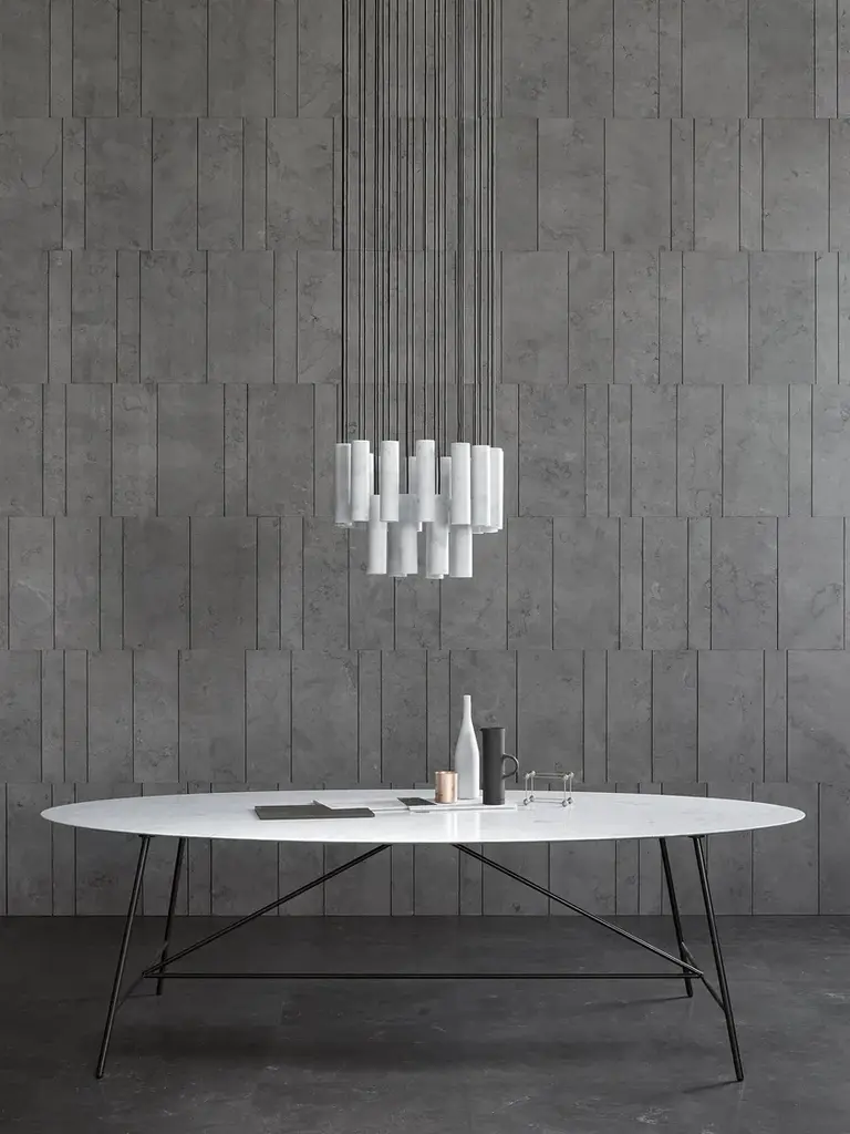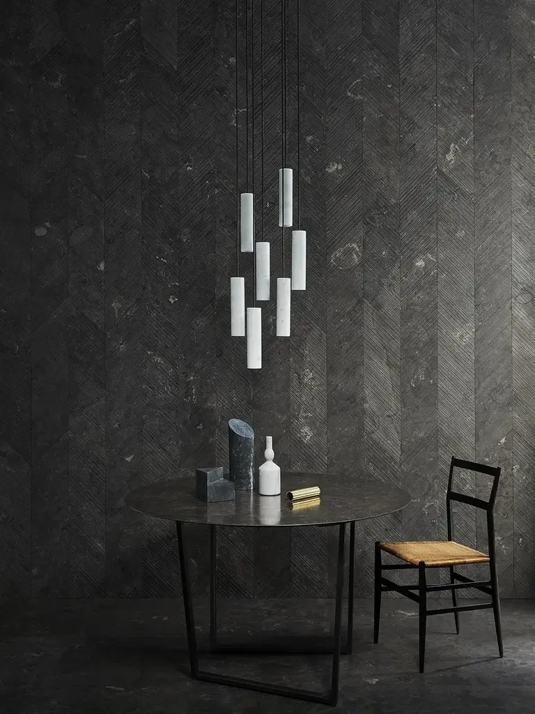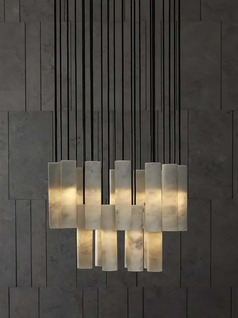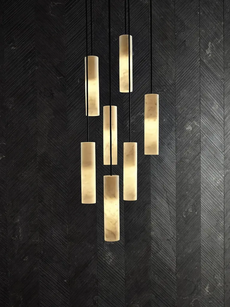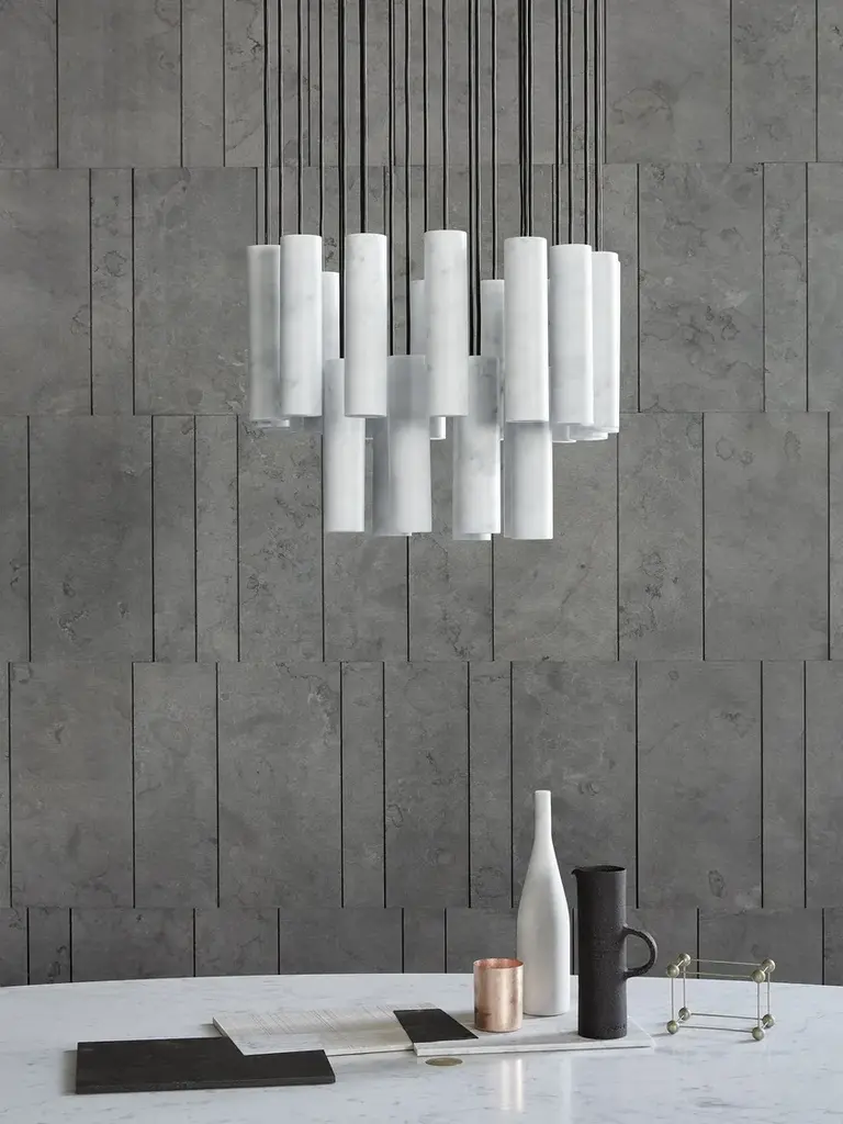 The simple cylinder is a perfect starting point for a beautiful object carved from stone, not a material that immediately springs to mind when talking about lighting.Spanish architect and designer David Lopez Quincoces, however has made it a stunning reality with his Silo pendant lamp.Available in both classic Bianco Carrara and in the warm dark tones of Pietra d'Avola, it gives off a beautifully soft and seductive light. It can be configured either as a single lamp or as a cluster, or, for a real showstopper, it comes as a chandelier composed of 26 separate lamps. Silo single lamp Diameter 6 x height 25 cm (2 3/8 x 9 7/8”)Material: Bianco Carrara marble or Pietra d’Avola limestoneSilo Cluster Comprised of three lamps suspended from a single ceiling rose in painted steel.Diameter of each lamp: 6 x height 25 cm (2 3/8 x 9 7/8”)Material: Bianco Carrara marble or Pietra d’Avola limestoneSilo Chandelier Composed of 26 lamps, each with a diameter of 6 cm x height 25 cm (2 3/8 x 9 7/8”)Material: Bianco Carrara marble or Pietra d’Avola limestone