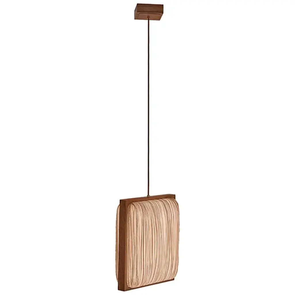 Jewel-like splendor in a geometric frame. The Simon Says Yes with Mahogany LED Pendant by Aqua Creations lures in with its clean lines and tactile details. Designed by the co-founder and famous photographer Albi Serfaty in 2016, this fixture, like the rest of his work, is inspired by nature. The shade features crisp, clean silk lines and is framed with mahogany wood to impart a sophisticated flair. A part of the Mino family, this fixture includes energy-efficient LED light that casts diffused glow all around.
