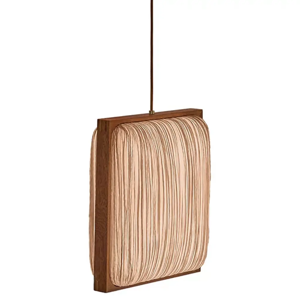 Jewel-like splendor in a geometric frame. The Simon Says Yes with Mahogany LED Pendant by Aqua Creations lures in with its clean lines and tactile details. Designed by the co-founder and famous photographer Albi Serfaty in 2016, this fixture, like the rest of his work, is inspired by nature. The shade features crisp, clean silk lines and is framed with mahogany wood to impart a sophisticated flair. A part of the Mino family, this fixture includes energy-efficient LED light that casts diffused glow all around.