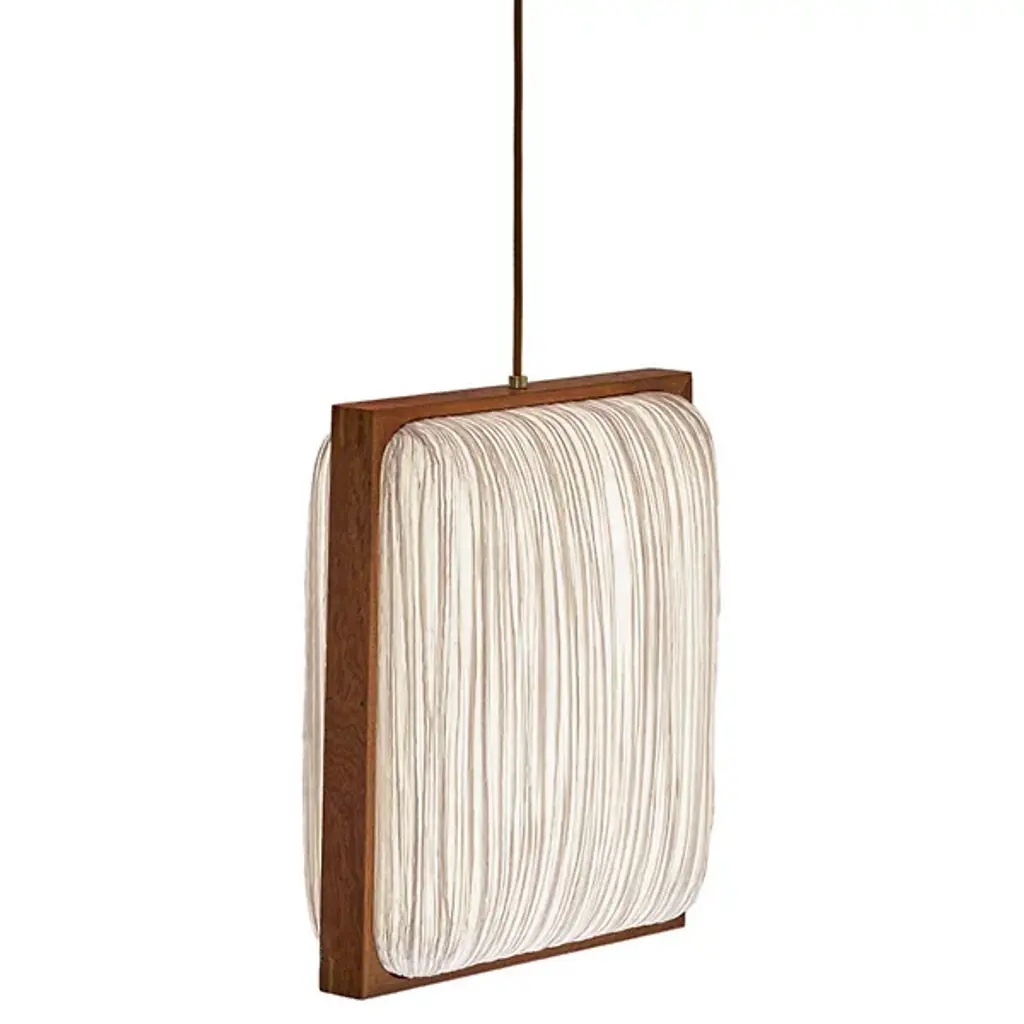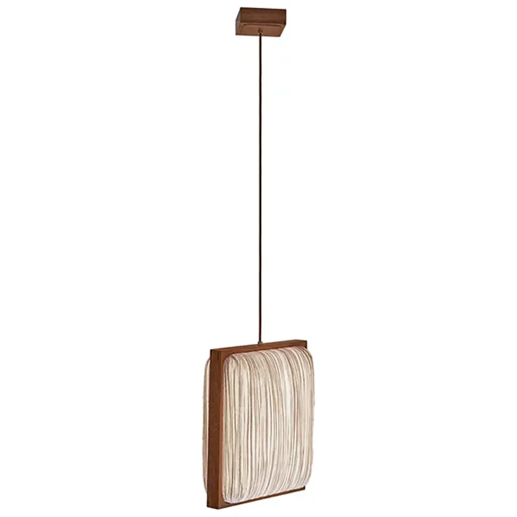 Jewel-like splendor in a geometric frame. The Simon Says Yes with Mahogany LED Pendant by Aqua Creations lures in with its clean lines and tactile details. Designed by the co-founder and famous photographer Albi Serfaty in 2016, this fixture, like the rest of his work, is inspired by nature. The shade features crisp, clean silk lines and is framed with mahogany wood to impart a sophisticated flair. A part of the Mino family, this fixture includes energy-efficient LED light that casts diffused glow all around.