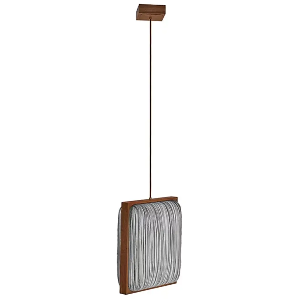 Jewel-like splendor in a geometric frame. The Simon Says Yes with Mahogany LED Pendant by Aqua Creations lures in with its clean lines and tactile details. Designed by the co-founder and famous photographer Albi Serfaty in 2016, this fixture, like the rest of his work, is inspired by nature. The shade features crisp, clean silk lines and is framed with mahogany wood to impart a sophisticated flair. A part of the Mino family, this fixture includes energy-efficient LED light that casts diffused glow all around.