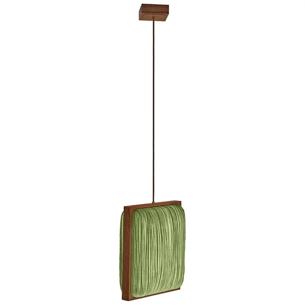 Jewel-like splendor in a geometric frame. The Simon Says Yes with Mahogany LED Pendant by Aqua Creations lures in with its clean lines and tactile details. Designed by the co-founder and famous photographer Albi Serfaty in 2016, this fixture, like the rest of his work, is inspired by nature. The shade features crisp, clean silk lines and is framed with mahogany wood to impart a sophisticated flair. A part of the Mino family, this fixture includes energy-efficient LED light that casts diffused glow all around.