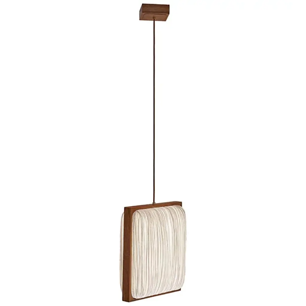 Jewel-like splendor in a geometric frame. The Simon Says Yes with Mahogany LED Pendant by Aqua Creations lures in with its clean lines and tactile details. Designed by the co-founder and famous photographer Albi Serfaty in 2016, this fixture, like the rest of his work, is inspired by nature. The shade features crisp, clean silk lines and is framed with mahogany wood to impart a sophisticated flair. A part of the Mino family, this fixture includes energy-efficient LED light that casts diffused glow all around.