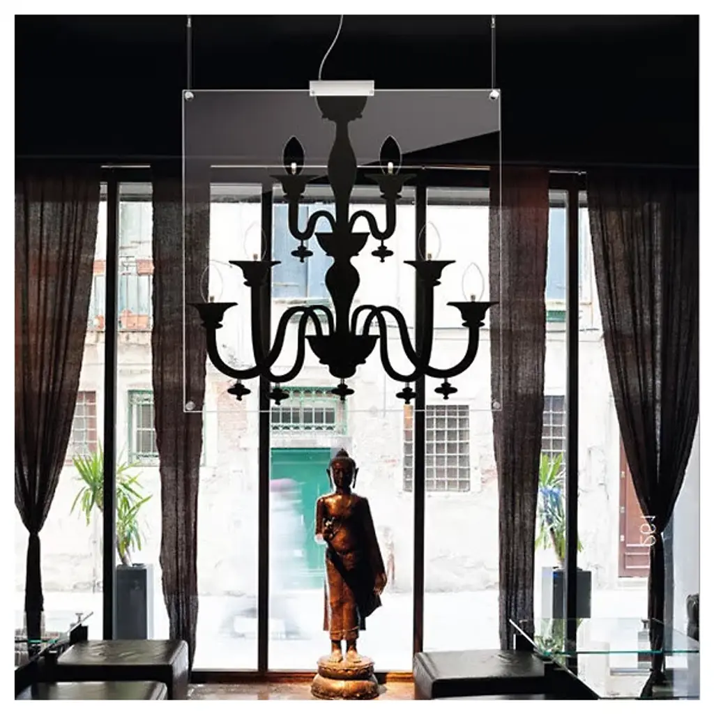 The unique Sinfonia Pendant Light is sure to command attention in any modern decor. This versatile pendant light features a metal structure with all the components in a chrome finish. The methacrylate diffuser is available in a transparent shade with white, red or black decorations. Suitable for both residential and commercial applications, the Sinfonia Wall Sconce looks best in modern living rooms, kitchens and dining areas.