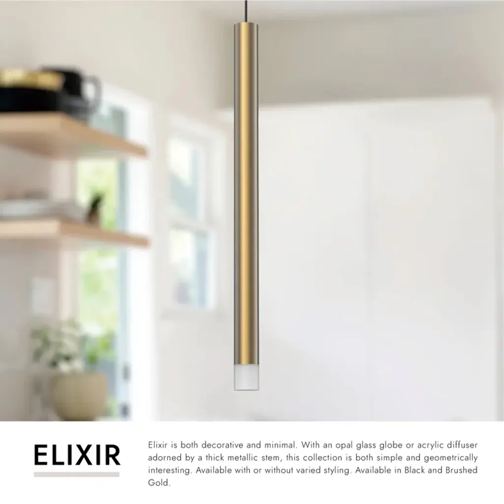 Elixir is both decorative and minimal. With an opal globe or acrylic diffuser adorned by a thick stem, this collection is both simple and geometrically interesting.