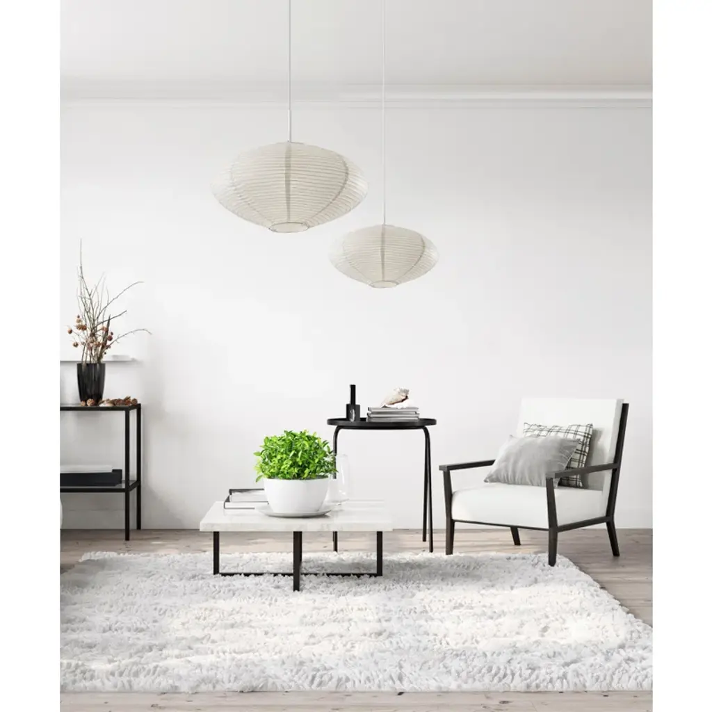 Elevate your space with this single geometric pendant light. Crafted from paper and stainless steel, it features an adjustable length and is compatible with sloped ceilings. Perfect for both residential and non-residential settings, this fixture adds a modern touch to any room.