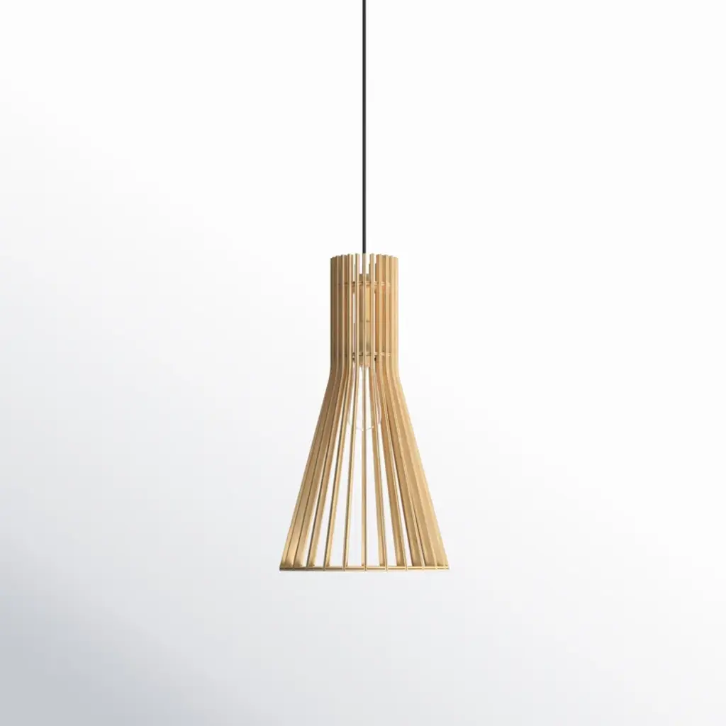 Add a modern and breezy focal point to any room with our Elstone extendable pendant. Our modern cone-shaped pendant attains a dramatic presence with its light and airy design. The natural finish and sleek profile of the ceiling light bring casual sophistication to a variety of styles. With an adjustable cord, the pendants can be hung alone or grouped at multiple heights to illuminate and create a dramatic display in your kitchen, hallway, dining, or living area.