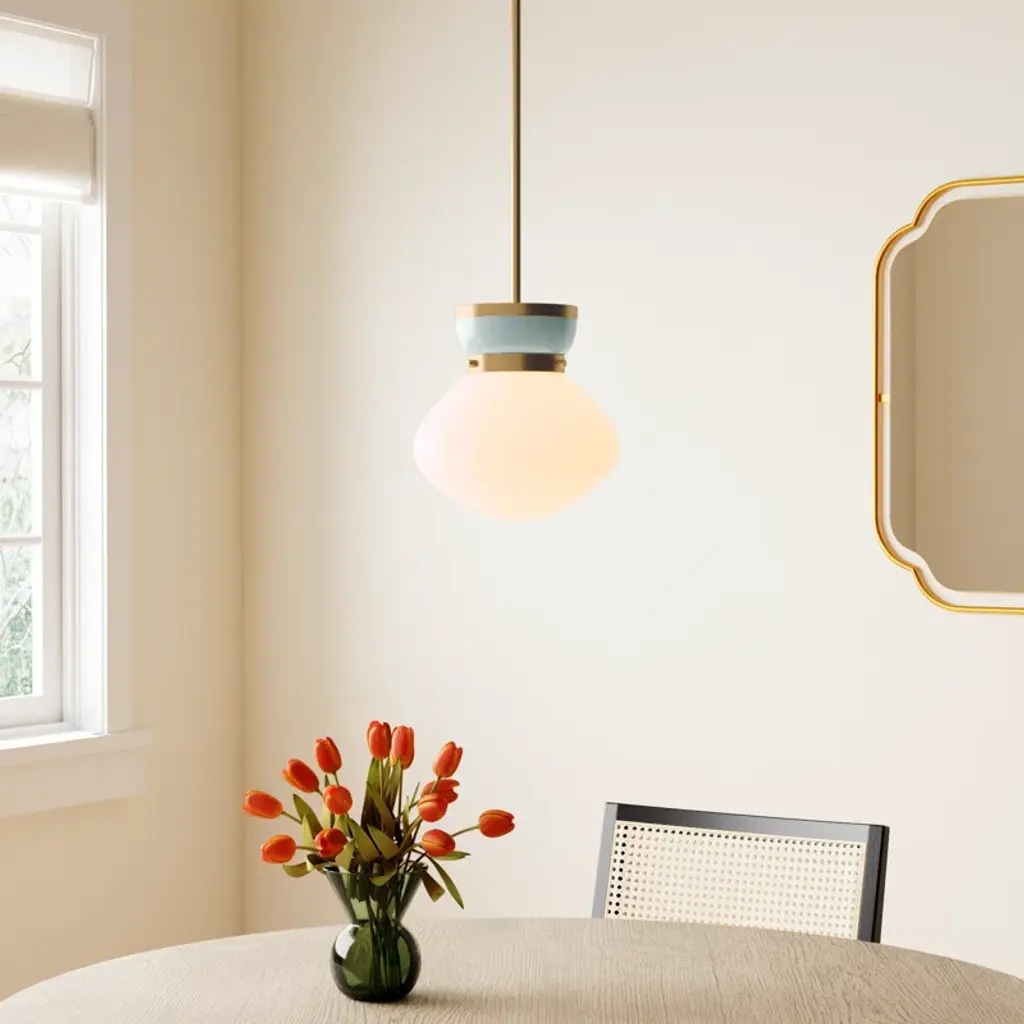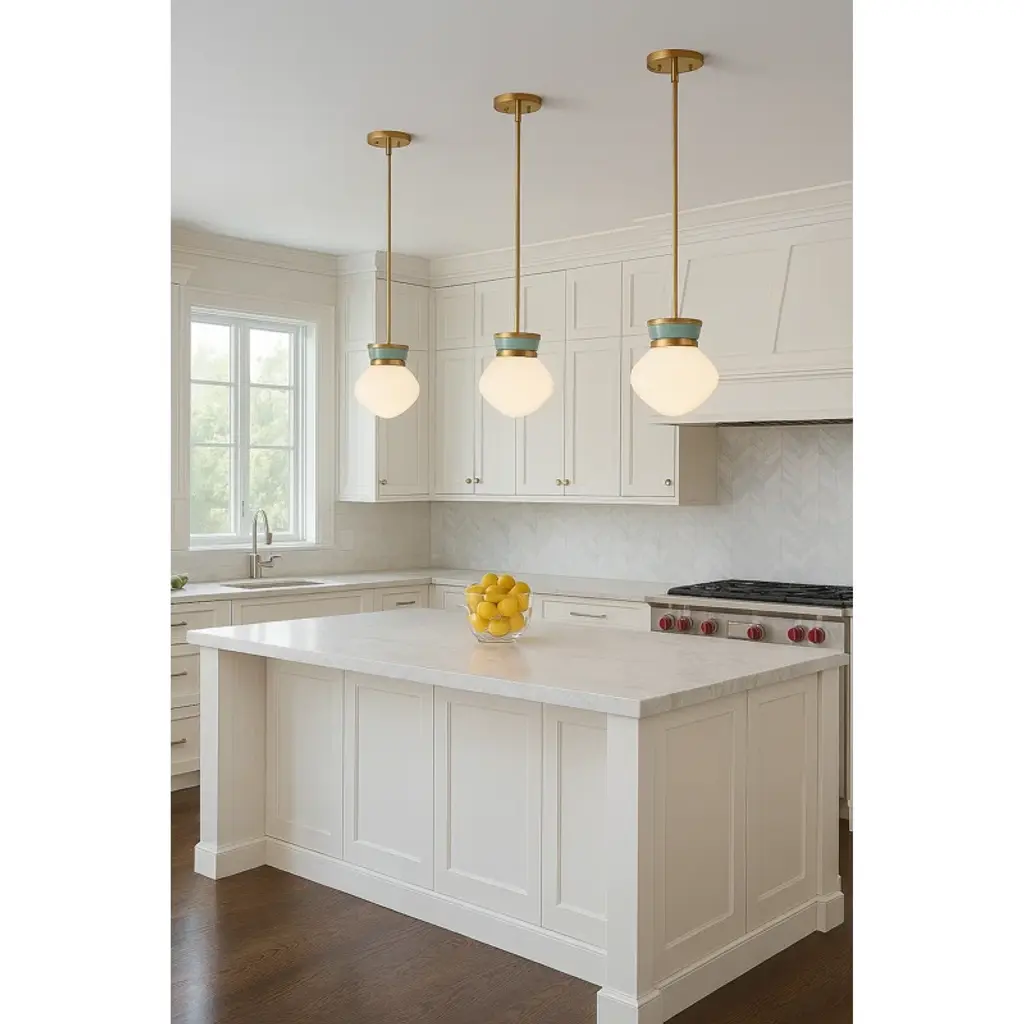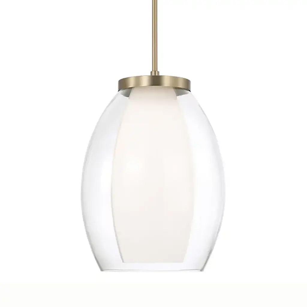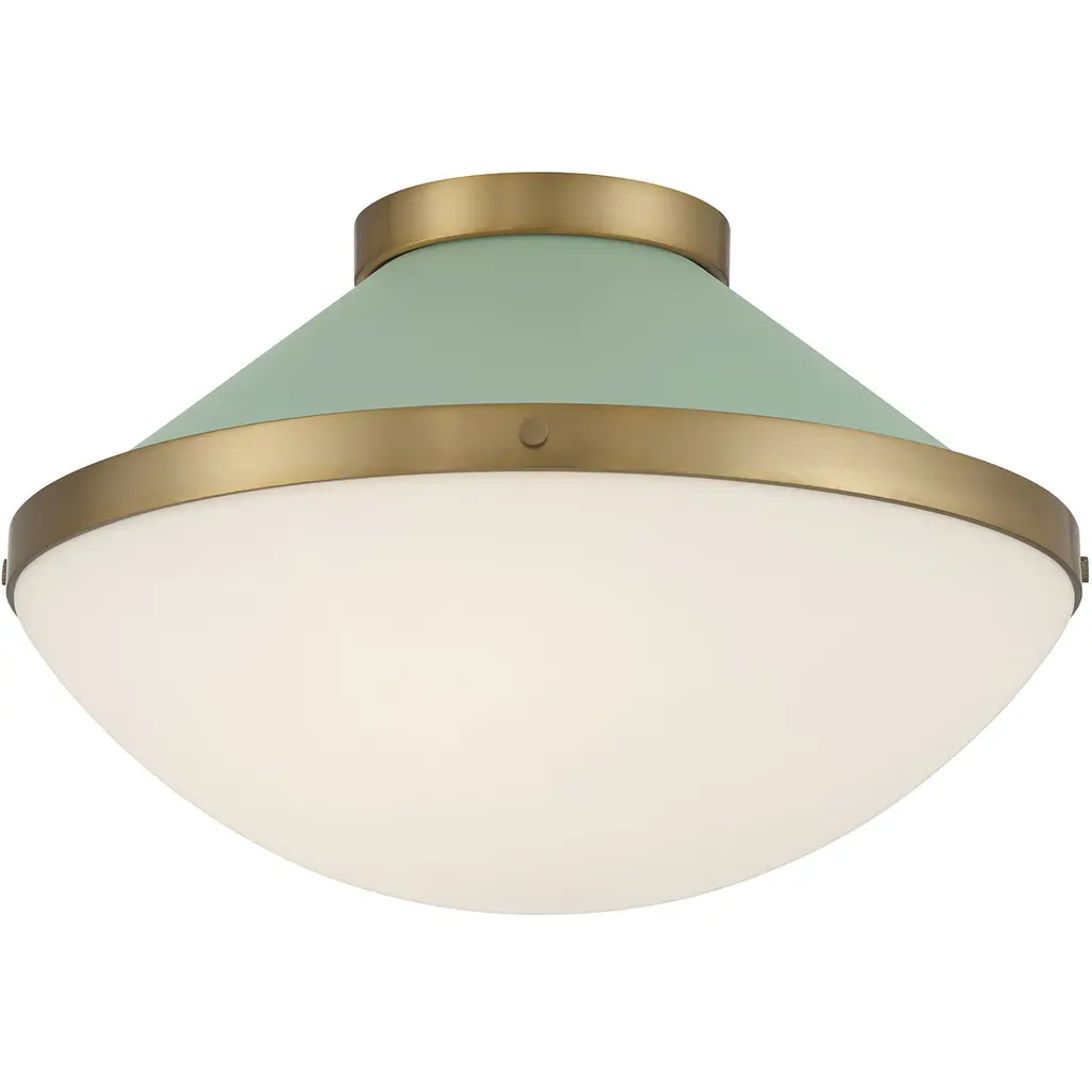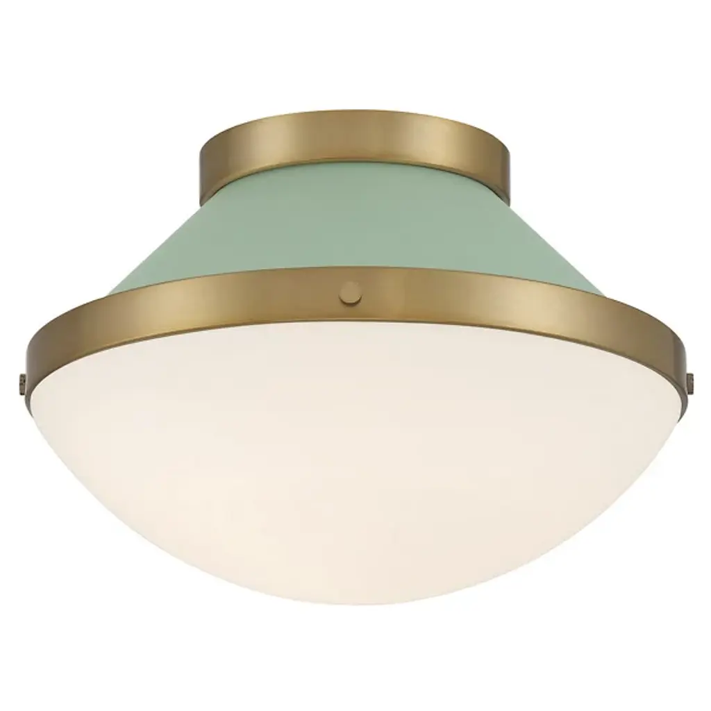 Ingomar is a petite beauty that packs a big punch. The curved lines and captivating color combinations are like a whirlwind romance with classic style. The schoolhouse's modern shade and bands of lacquered brass finish off the timeless love story with a softness that fits in any space or place.