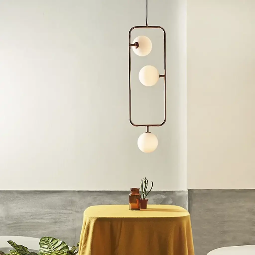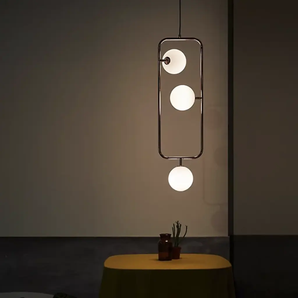 The Sircle Triple Pendant by Seed Design merges recognizable shapes together with a touch of craftsmanship and some elegant flair. A sleek, open, rectangular frame with rounded edges houses a set of mouth-blown, spherical glass shades. Beautifully diffusing an even layer of light, each of these luminous globes is cleverly held by a simple arm that allows them to orbit around where they are anchored, letting you artfully arrange this delightful design to complement the spaces it brightens.