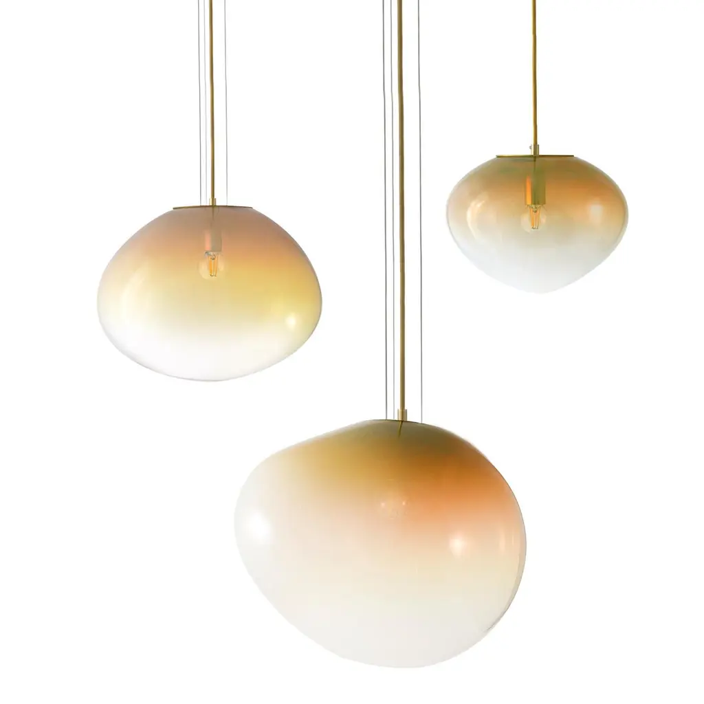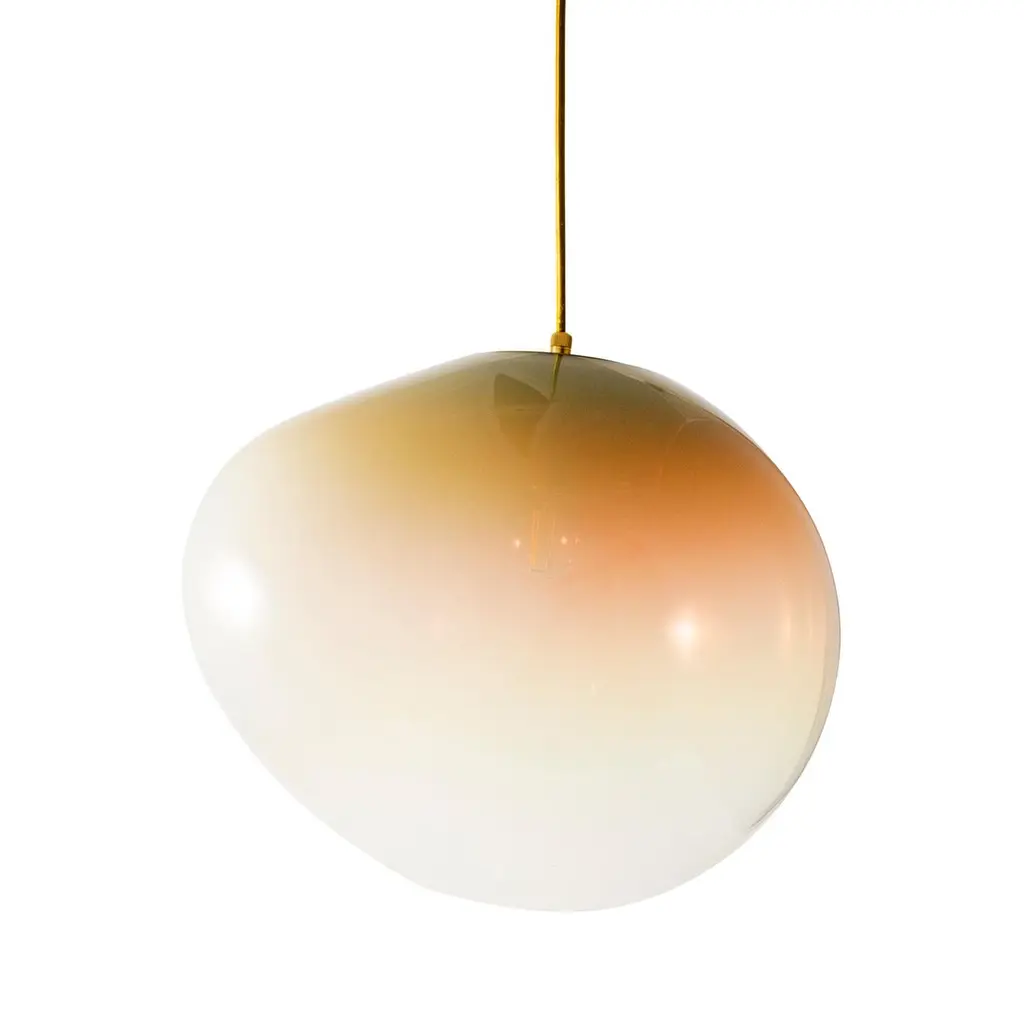 Sirius XL pendant by ELOA.No UL listed Material: LED bulb, glass.Dimensions: D 38 x W 43 x H 38 cm.Also available in different colours and dimensions.All our lamps can be wired according to each country. If sold to the USA it will be wired for the USA for instance.Sirius is the most visible star in the sky. SIRIUS combines the liveliness of light with the beauty of organically rounded horizontal shapes – bringing a majestic feeling of levitation into your space. It sparkles, suspended from the ceiling, with its pleasingly irregular form creating an impression of quiet movement throughout the room. Its iridescent amber hues contain all the colors of the light spectrum – giving out a warm glow and surrounding you with a cozy cocoon of calm.Light objects float weightlessly in space. Fragile, iridescent, timeless. ELOA is amodular lighting system composed of unique handcrafted glass pieces. Select from a variety of hand blown forms, which are one of a kindin shape, size andcolor - unique.Solitary or in constellation, the ELOA lights create individual light concepts andassociate with star constellations. Each glass piece is named after a star or a planet.They exist as hanging, floor, standing and wall luminaries.ELOA combines the craft of ancient glassblowing with a simple, yet distinct design.In order to achieve the large size of the glass objects and working without forms, it takes a high level of refined craftsmanship and skill performed by only a few master glassblowers.