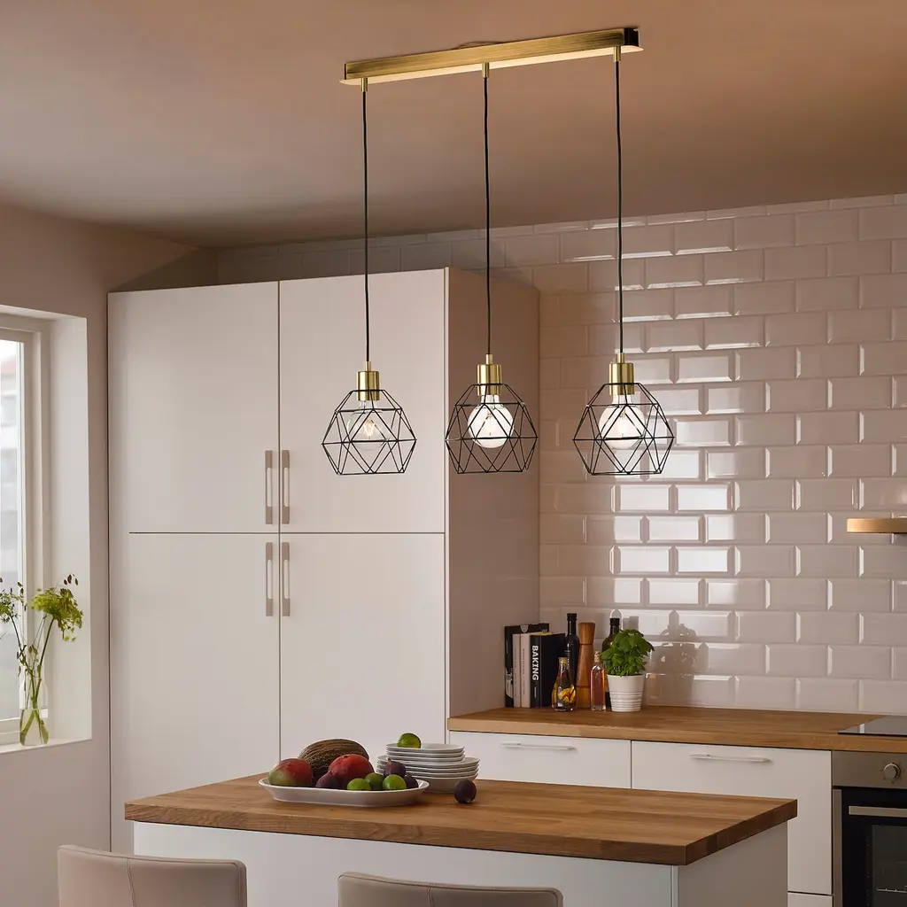 Skaftet Triple Cord Set With Ceiling Mount - Rectangle Brass