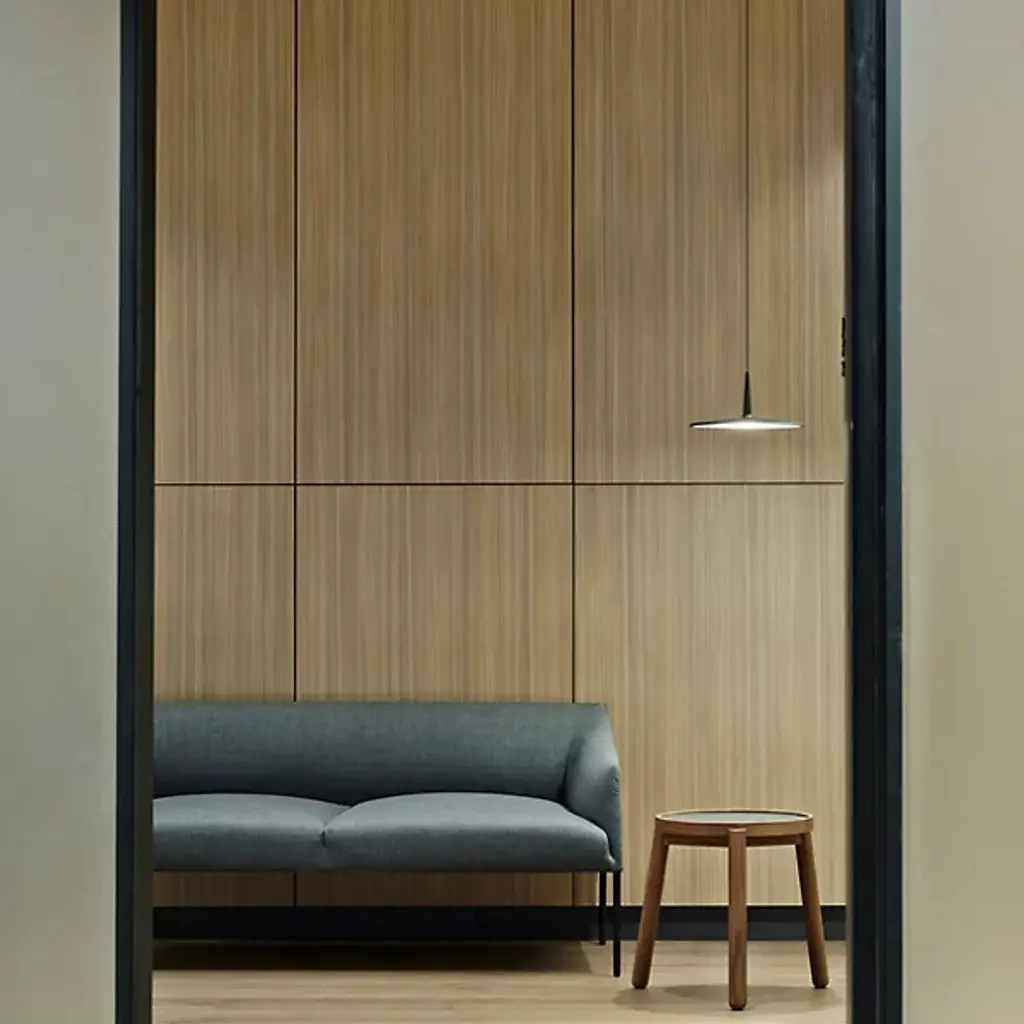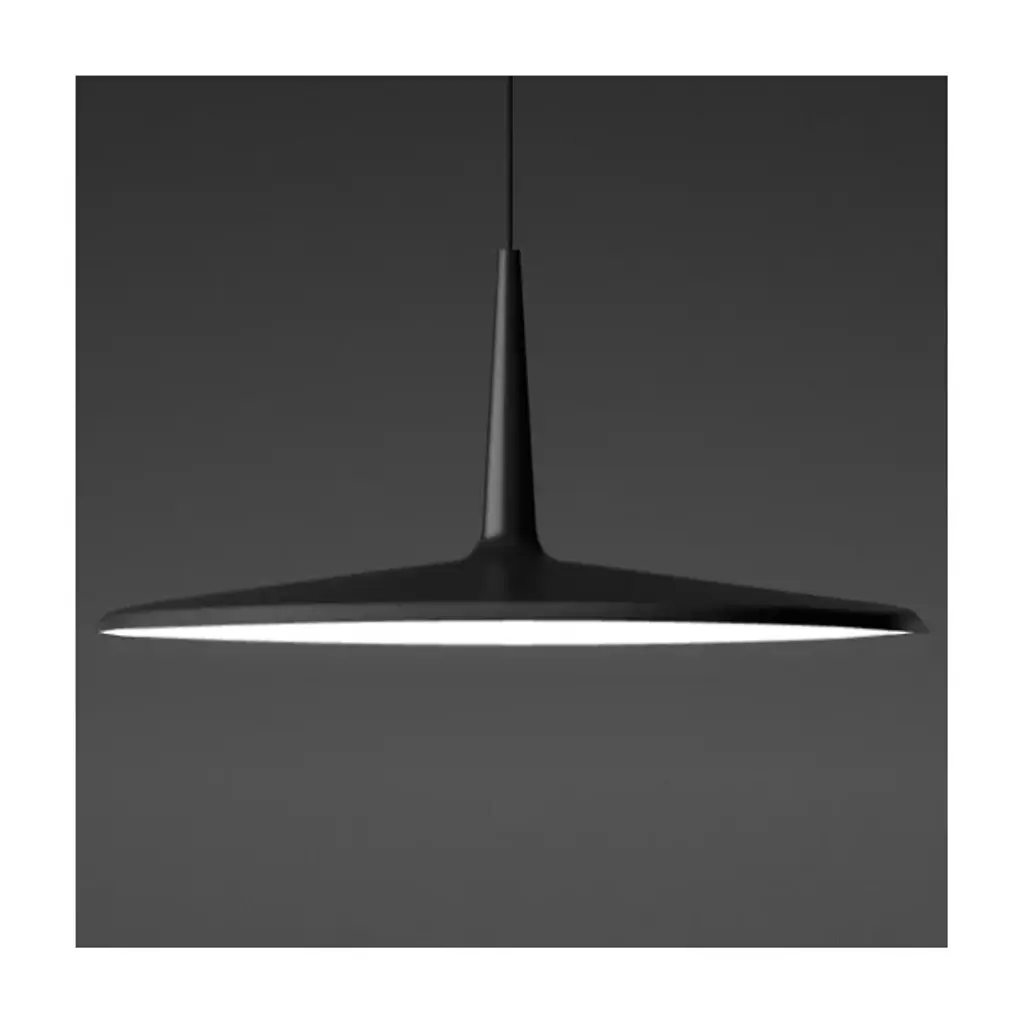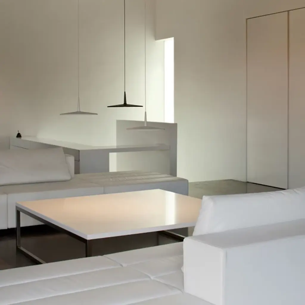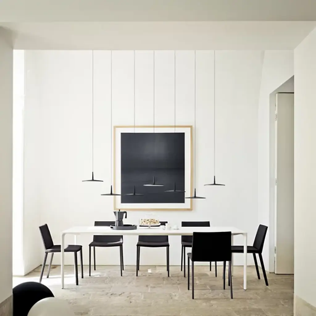 Pure design that really shines. The minimalist form of the Vibia Skan Pendant makes it ideal for accentuating contemporary spaces. It also enables a uniquely broad and bright wash of downlight as, instead of a flat disc, the bottom diffuser tapers inward at the center to surround the LED within. No light is wasted as it's evenly diffused all the way out to the very edge of the pendant.