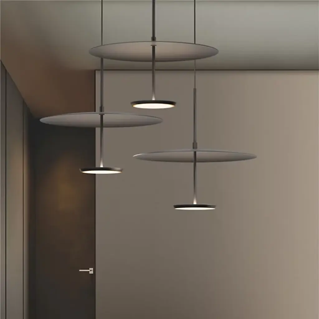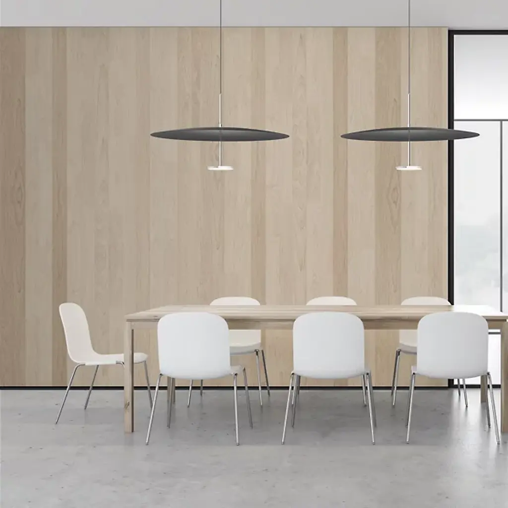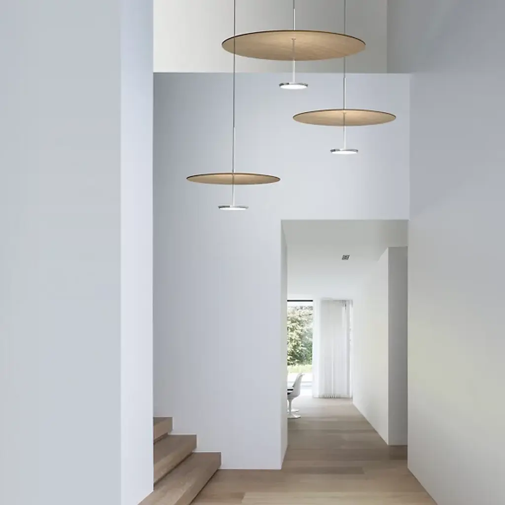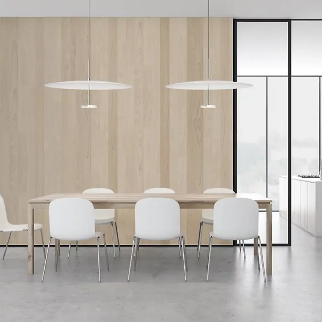 Designed to capture the relaxed quality of natural light. The Sky Dome LED Pendant from Pablo Designs is an elegant 2-way lighting device, entering the room with a weightless composition of shapes. This Pablo Studio and Pablo Pardo piece showcases their reductive approach to design. By displaying only essential shapes, the pendant flows freely across a range of home styles. It makes the most of its space overhead with an ultra-fine down rod suspension. An LED panel at the base produces an upward light that glazes the top disc with a warm glaze. This disc spreads out light evenly and softly. The LED panel also generates a downward stream of task light.