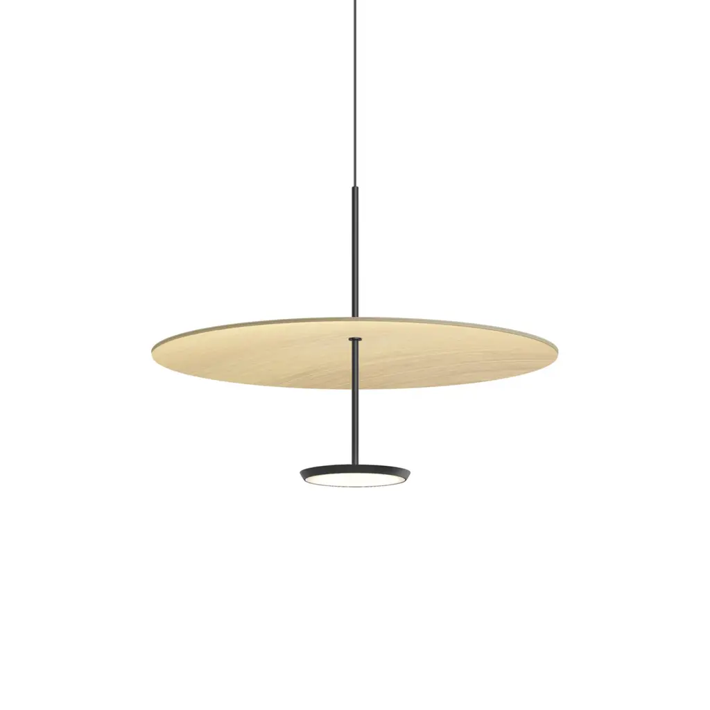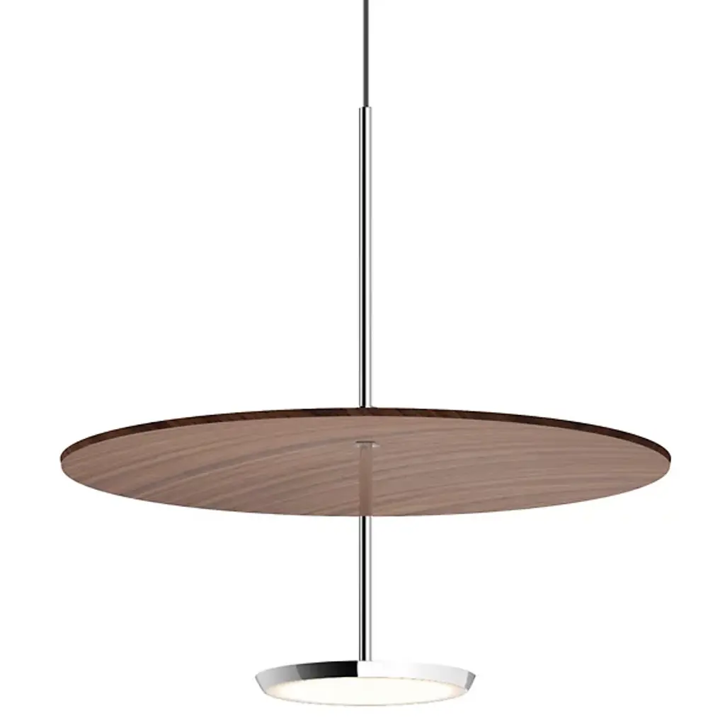 A slim form that appears to hover weightlessly in the air, the Sky Dome LED Pendant (2020) is an unobtrusive fixture that fills the room with warm, ambient lighting. Fully dimmable, its powerful two-sided LED light source sends light upward to reflect off the shade's sleek interior, which then blends with the glare-free downlight for even illumination in all directions. Bulb (included): Integrated LED, 18 Watts, 1250 total Lumens (850 down, 400 up), 2200-2700K Warm Color Temperature. UL Listed. Electronics made in China, shade made in Denmark.