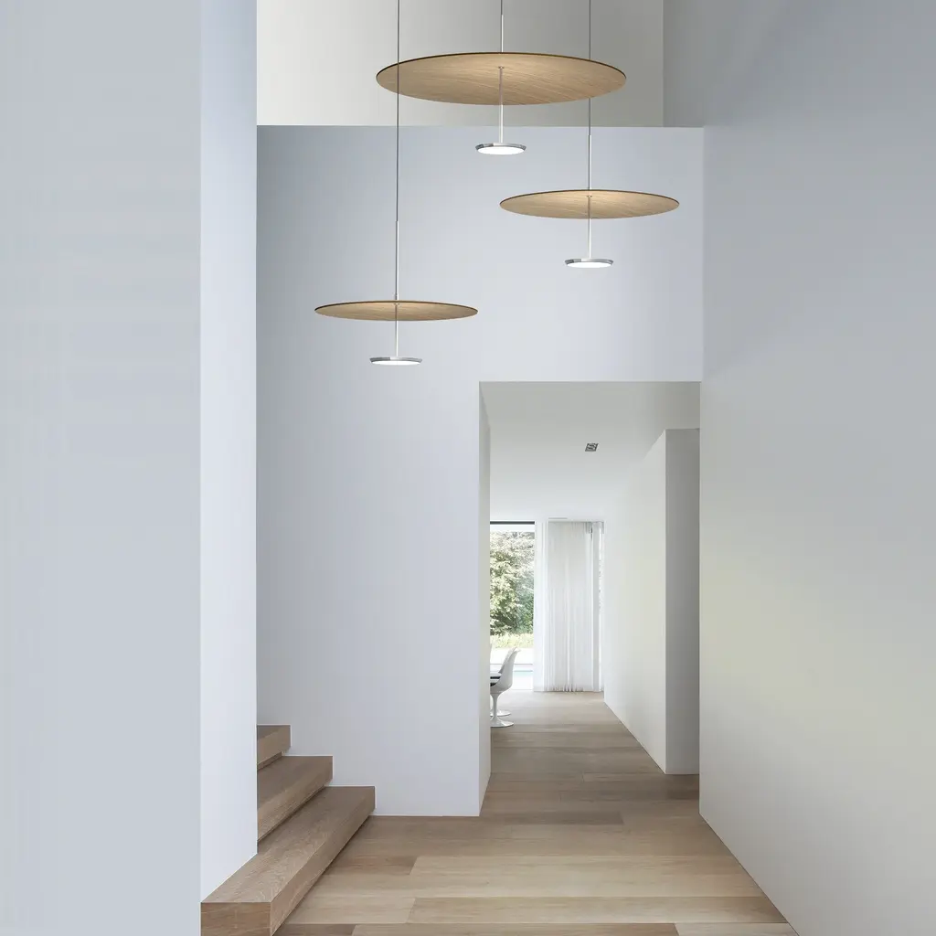 With a reflector shade in pressed white oak or walnut, Sky Dome offers a mellow reflected glow via its powerful 2-sided LED light source. Available in 2 sizes, the pendant essays a weightless appearance while providing unparalleled illumination in all directions. Mimicking natural light, the Sky series features Dim-to-Warm technology to provide a balanced range of desired ambiance.