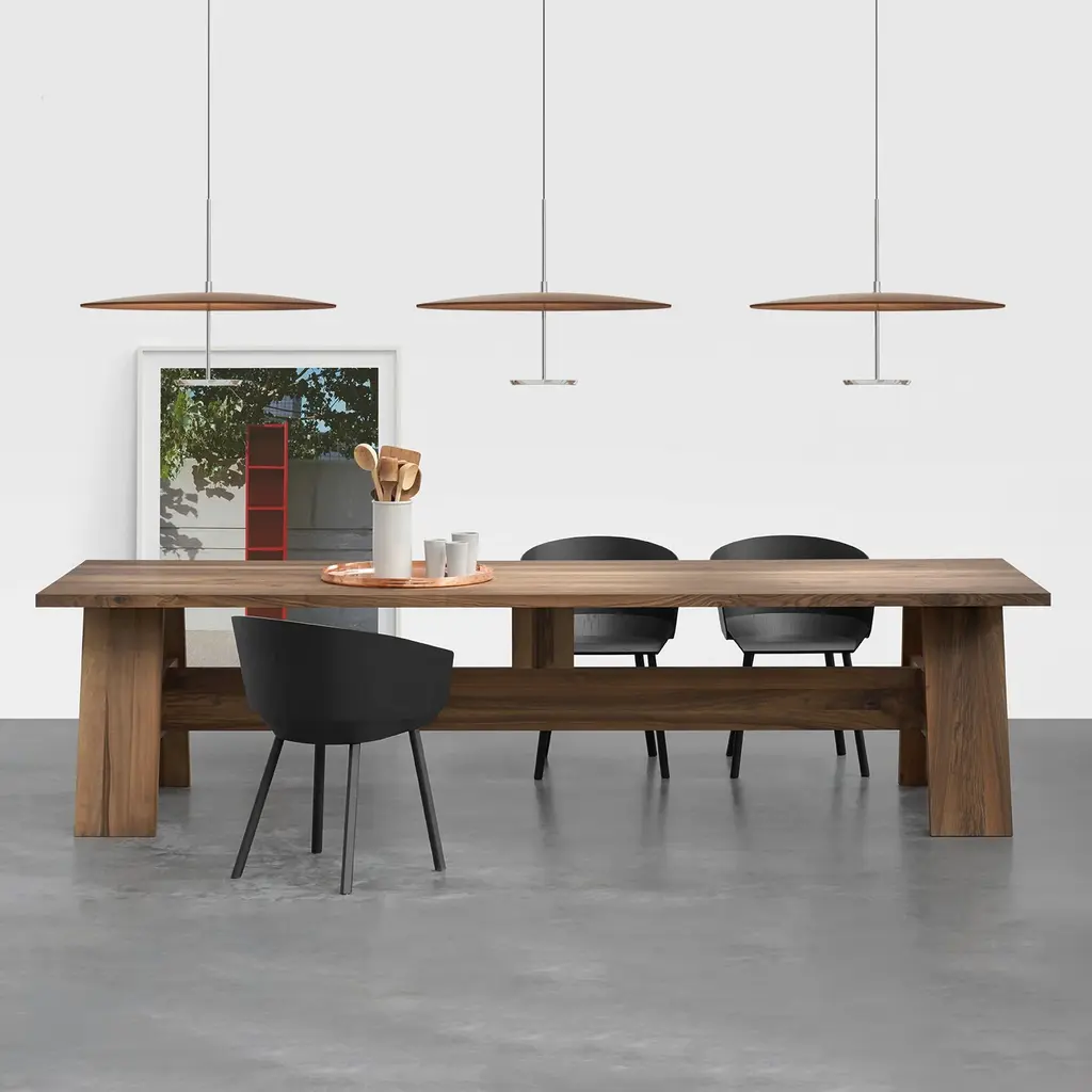 With a reflector shade in pressed white oak or walnut, Sky Dome offers a mellow reflected glow via its powerful 2-sided LED light source. Available in 2 sizes, the pendant essays a weightless appearance while providing unparalleled illumination in all directions. Mimicking natural light, the Sky series features Dim-to-Warm technology to provide a balanced range of desired ambiance.