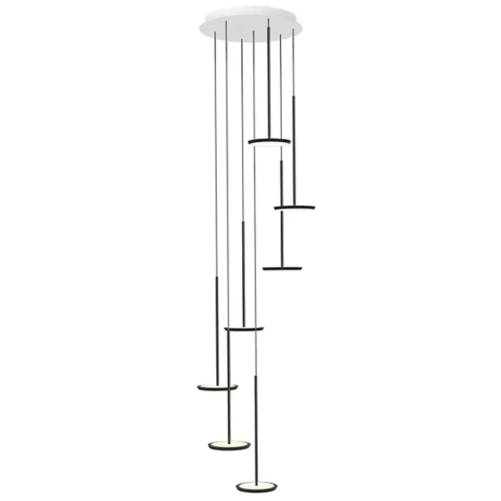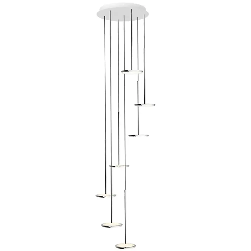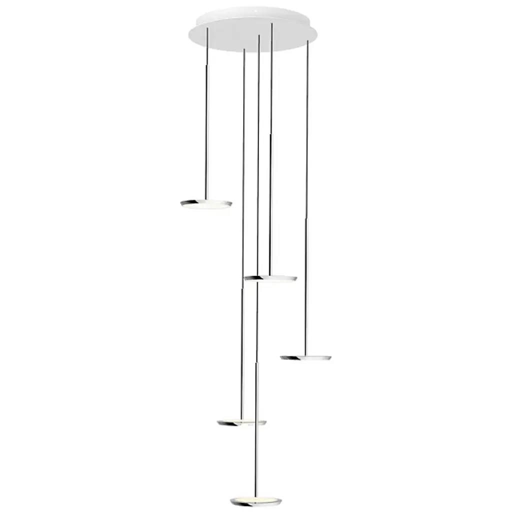 Bring broad-reaching brightness to your ceilings with the Sky LED Multi-Light Pendant from Pablo Designs. A sleek minimalist offering from Venezuelan industrial designer Pablo Pardo, it stays well in line with his career focus on creating attractive utilitarian fixtures that connect people with their surroundings. A stepped steel canopy anchors the fixture, sending down a series of slender but strong fabric cords down to smooth aluminum stems that each terminates in an upward-beveled disc of die-cast aluminum securing a compact double-sided LED that projects a generous, glare-free ambient glow.