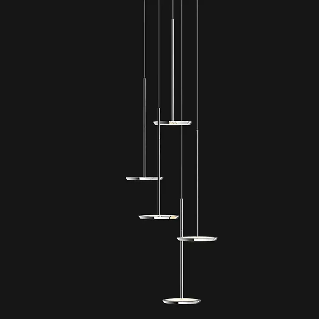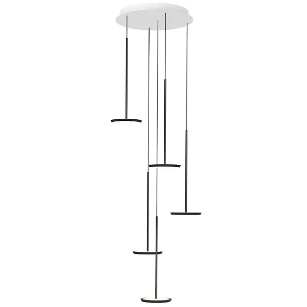 Bring broad-reaching brightness to your ceilings with the Sky LED Multi-Light Pendant from Pablo Designs. A sleek minimalist offering from Venezuelan industrial designer Pablo Pardo, it stays well in line with his career focus on creating attractive utilitarian fixtures that connect people with their surroundings. A stepped steel canopy anchors the fixture, sending down a series of slender but strong fabric cords down to smooth aluminum stems that each terminates in an upward-beveled disc of die-cast aluminum securing a compact double-sided LED that projects a generous, glare-free ambient glow.