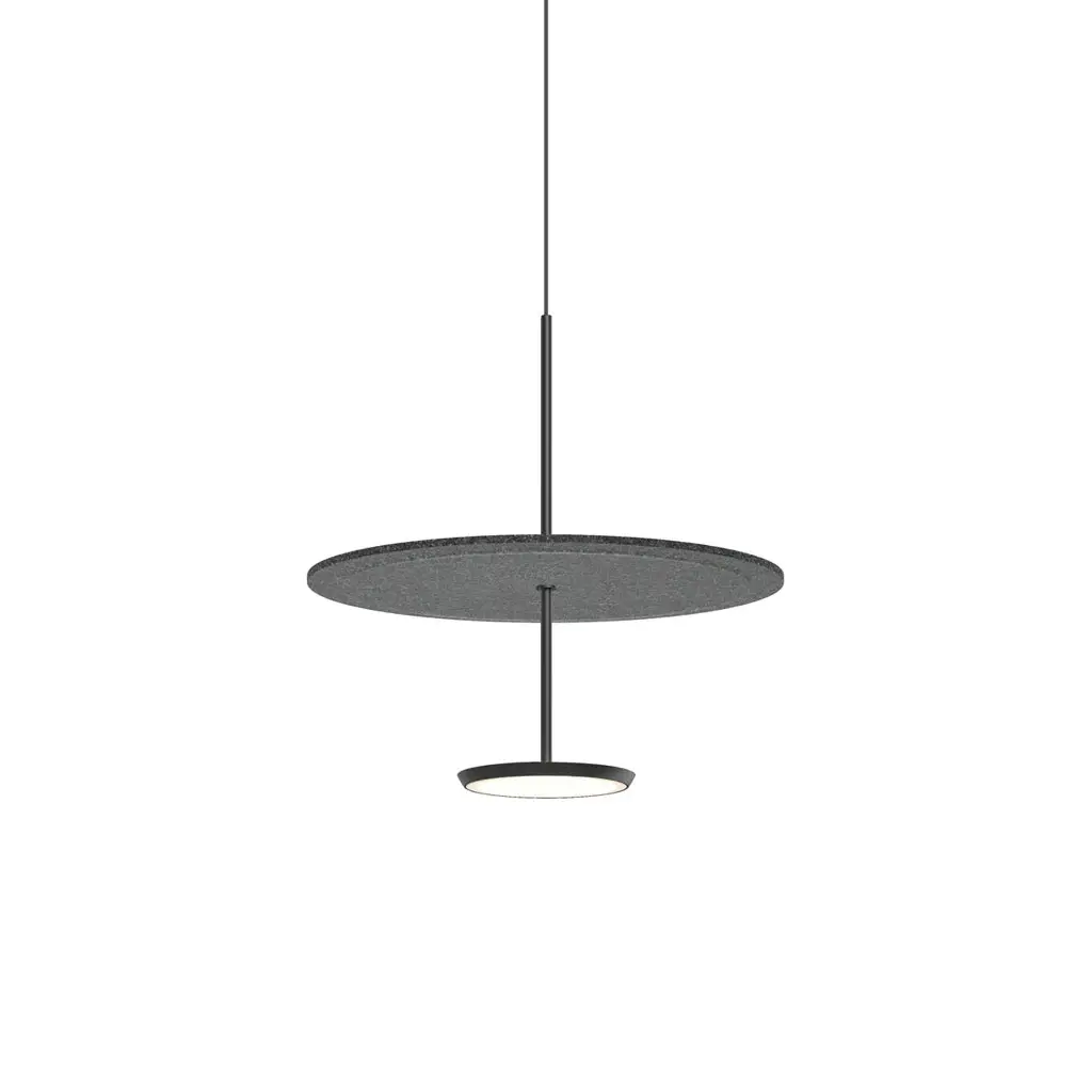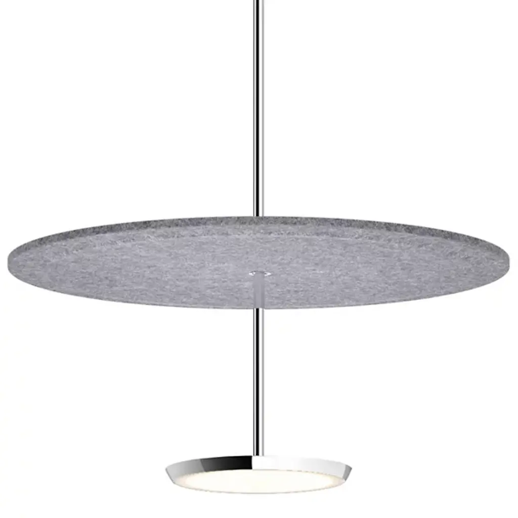 Pablo adroitly fuses powerful flat-panel LED lighting with dynamic ambient noise reduction in Sky Sound. The sleek pendant light combines an elegant PET felt reflector suspended on a vertical mast with an omni-directional polished aluminum light element to provide glare-free illumination and effective acoustic dampening for high-traffic and group-oriented areas. Available in 3 sizes, the fixture is sustainably produced with minimal use of materials and flat-pack shipping. Scaling from small to large spaces, Sound can also be suspended in mixed groupings for maximium noise-control coverage.