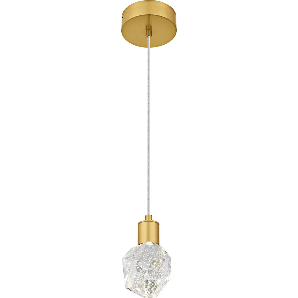 Transform your home with Skye, where modern elegance meets innovative design. Featuring a luxurious brushed gold finish, this collection exudes modern sophistication and style. The clear bubble crystal glass adds a unique texture and a touch of glamour, creating a stunning visual effect when illuminated. With an integrated LED light source, Skye pendants provide bright, energy-efficient lighting that enhances any room.