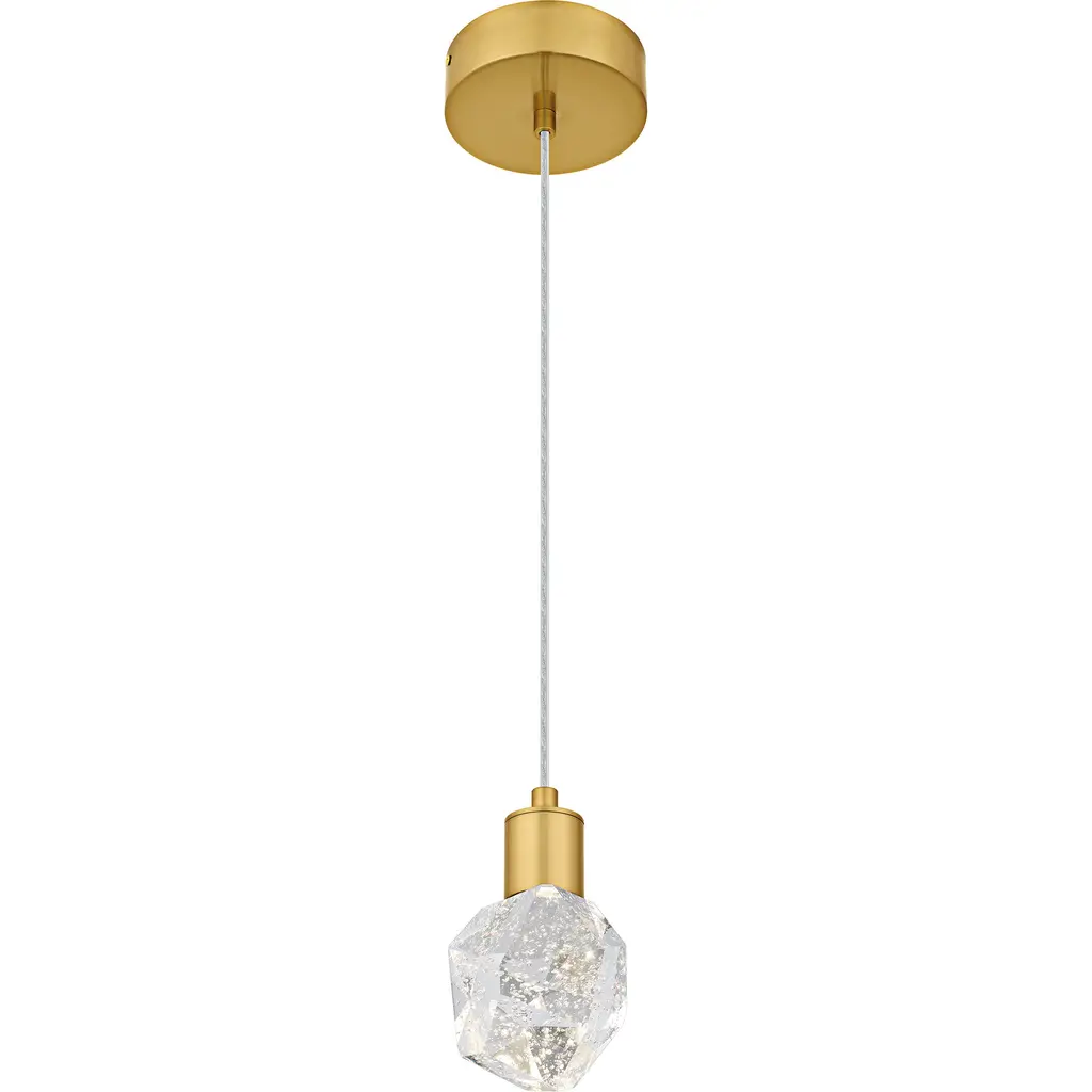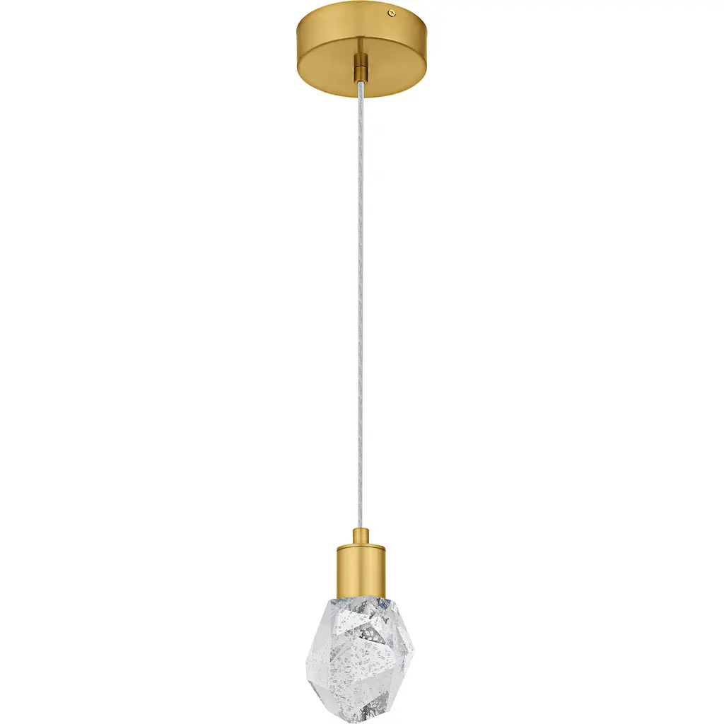 Transform your home with Skye, where modern elegance meets innovative design. Featuring a luxurious brushed gold finish, this collection exudes modern sophistication and style. The clear bubble crystal glass adds a unique texture and a touch of glamour, creating a stunning visual effect when illuminated. With an integrated LED light source, Skye pendants provide bright, energy-efficient lighting that enhances any room.