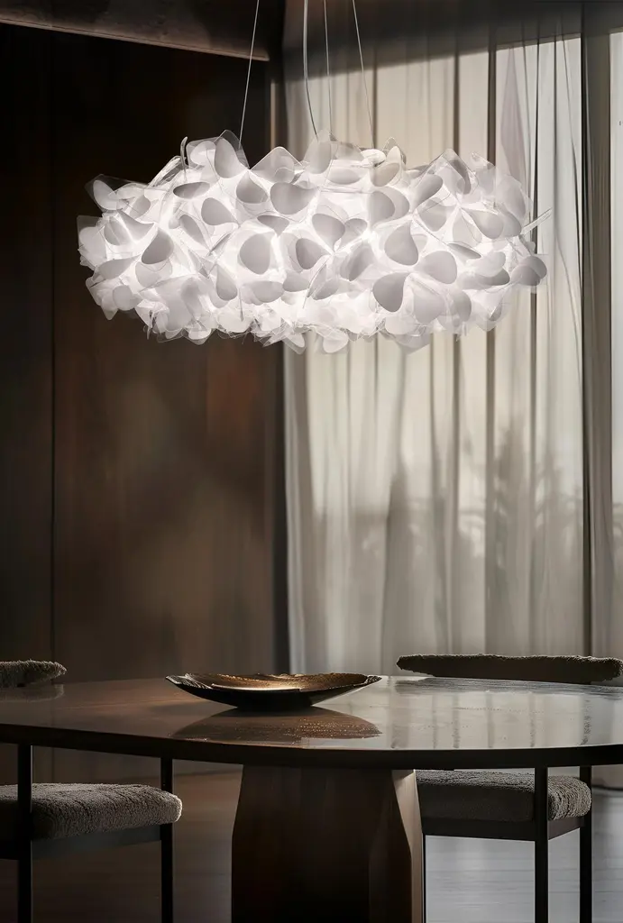 Who hasn’t held a daisy in their hands, repeating, “loves me, loves me not”? Clizia Mama Non Mama is a suspension inspired by nature’s purity; this bouquet’s light, delicate petals bring a soft breeze of balanced allure into any interior. Clizia Mama Non Mama is an ode to joy, femininity, primordial love, and pure emotion, handcrafted from interlocking Cristalflex petals. If the red cable does not match your space, we will give you a transparent cable.Size: Ø 78 cm x H 28 cm / Ø 30-3/4” x H 11” maximum cable length: 140 cm / 55”Colors: Mama Non MamaMaterials: CristalflexWith: MagneticSystem Red wrapped electric wire Available also with transparent cableLight source: Bulbs E27: 4 x 12W LED Filament.