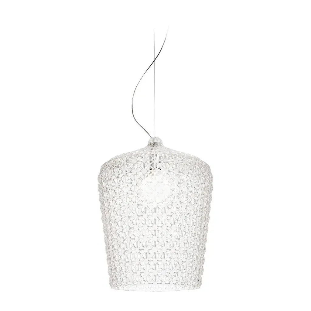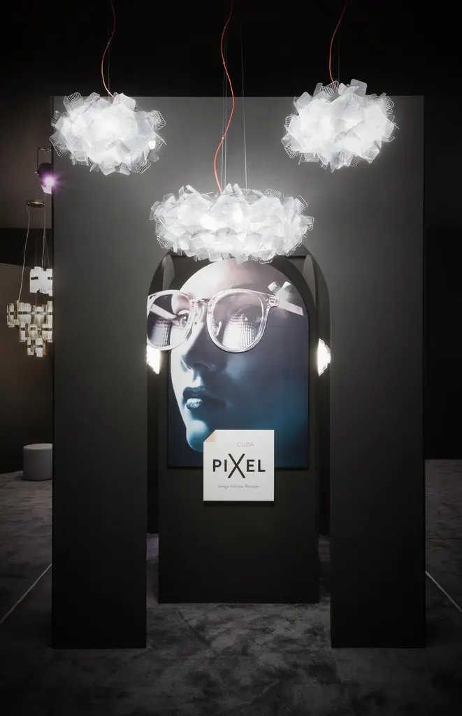 What would happen if a Greek nymph was suddenly transported to the digital age? Slamp’s Clizia collection is covered in pixels! A high-tech pattern in soft tones spread across the lamp’s supple shapes. The cheeky and creative red cable can be replaced by a transparent one upon request. A dusting of white inside the decorative elements helps evenly distribute the light without glare. Available in two sizes, as well as ceiling and applique.Size: Ø 53 cm x H 25 cm / Ø 20-3/4” x H 9-3/4” maximum cable length: 140 cm / 55”Colors: PixelMaterials: CristalflexWith: Magnetic System Red wrapped electric wire available also with transparent cableLight source: Bulbs E27: 2 x 12W LED Filament.