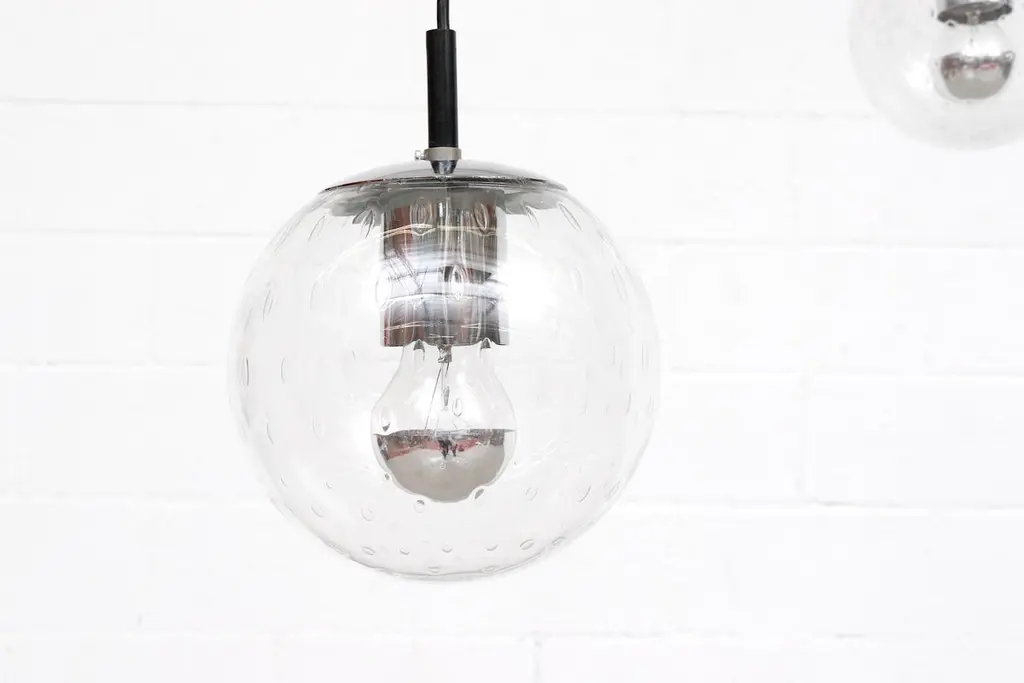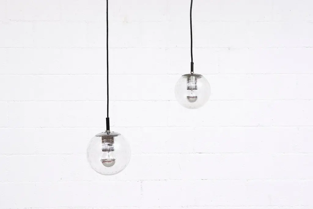 Small Hand Blown Glass Globe Pendants By Raak With Chrome Hardware